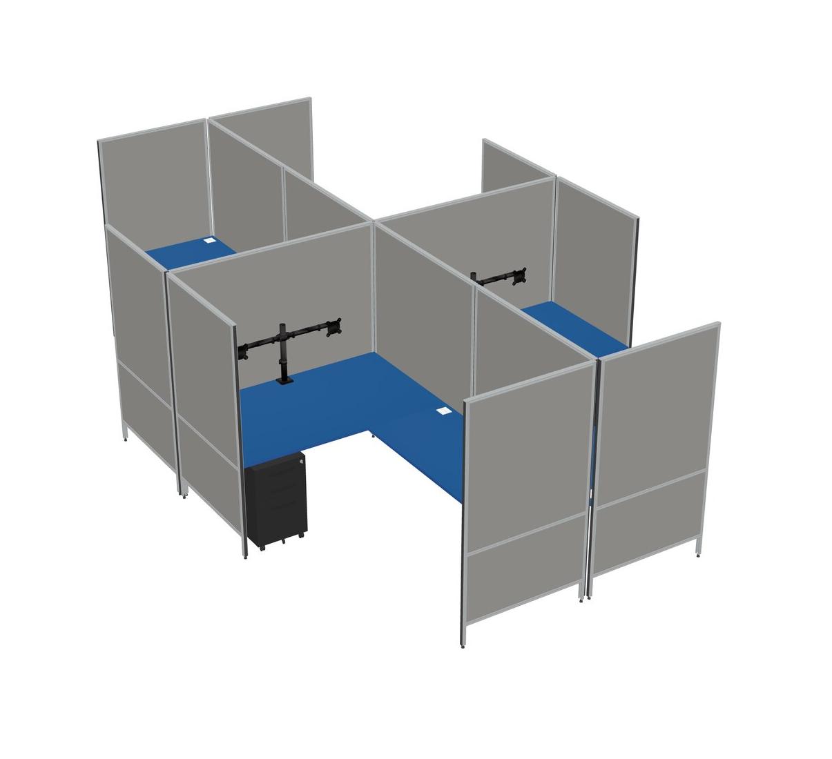 Système De Panneaux Modulaires Modernes En Forme De L Prism Blue + Tiroirs Mobiles En Métal + Bras Pour écran (double Bras)