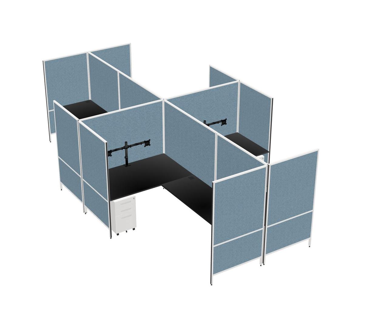 Système De Panneaux Modulaires Modernes Noirs En Forme De L + Tiroirs Mobiles En Métal + Bras Pour écran (double Bras)