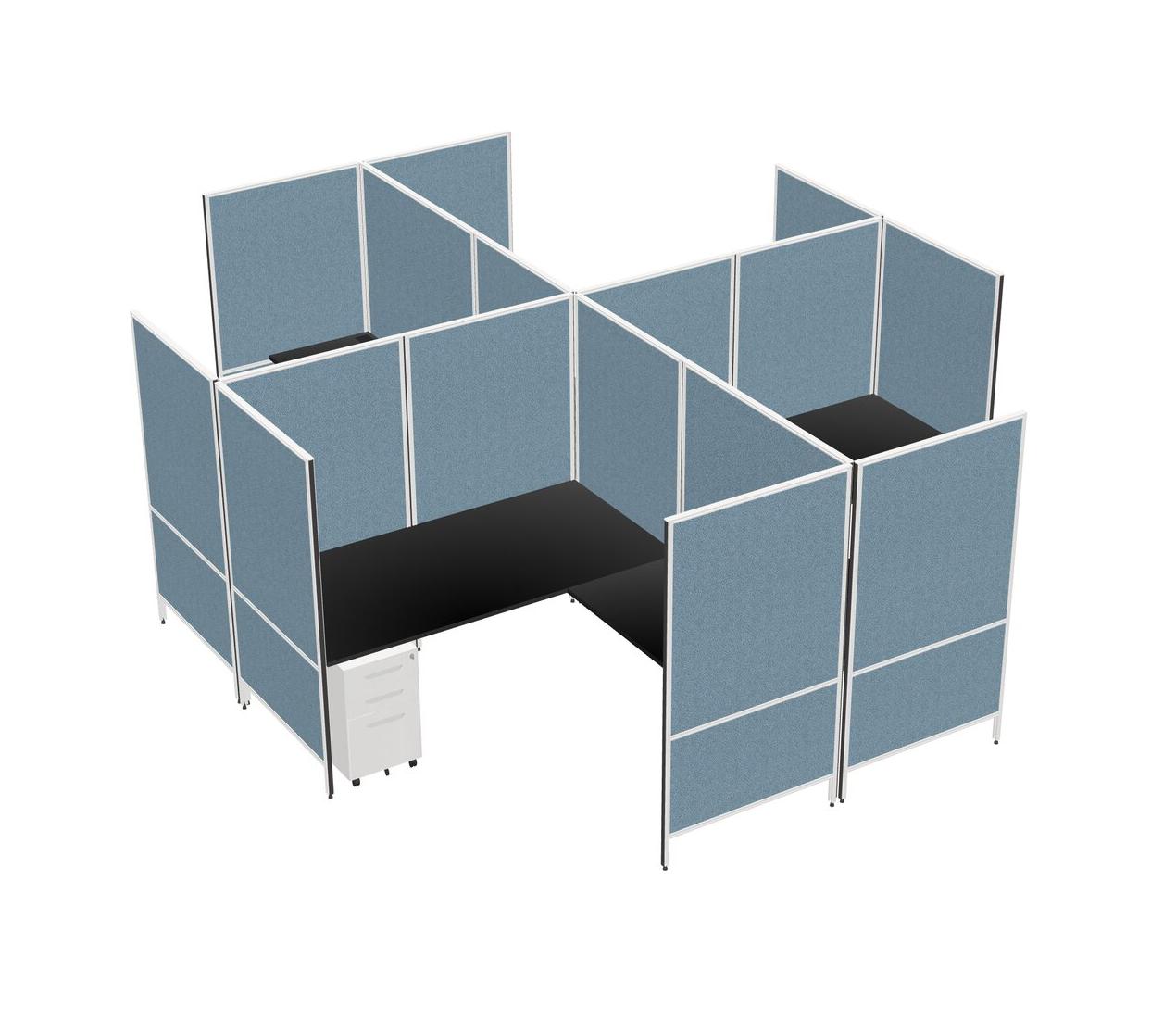 Système De Panneaux Modulaires Modernes Noirs En Forme De L à Quatre Sections + Tiroirs Mobiles En Métal
