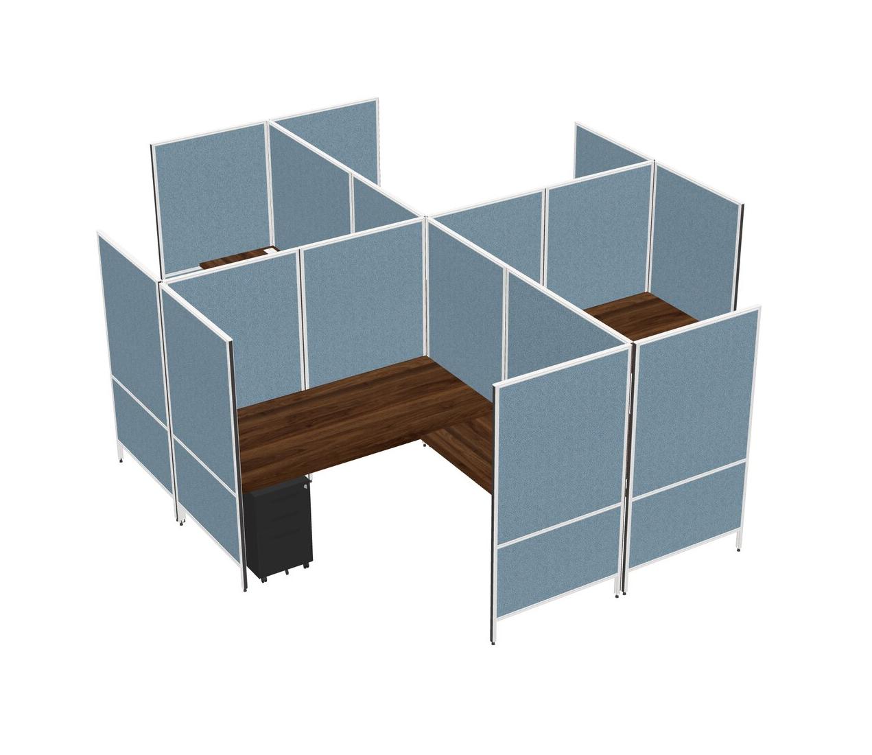 Système De Panneaux Modulaires Modernes En Forme De L à Quatre Sections En Noyer Columbia + Tiroirs Mobiles En Métal
