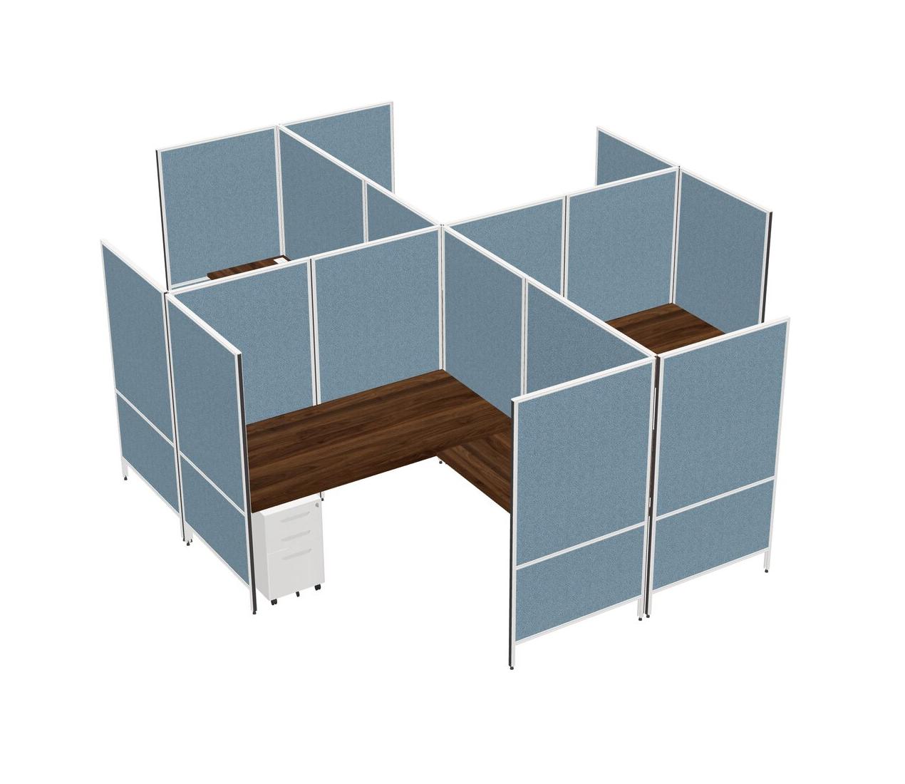 Système De Panneaux Modulaires Modernes En Forme De L à Quatre Sections En Noyer Columbia + Tiroirs Mobiles En Métal