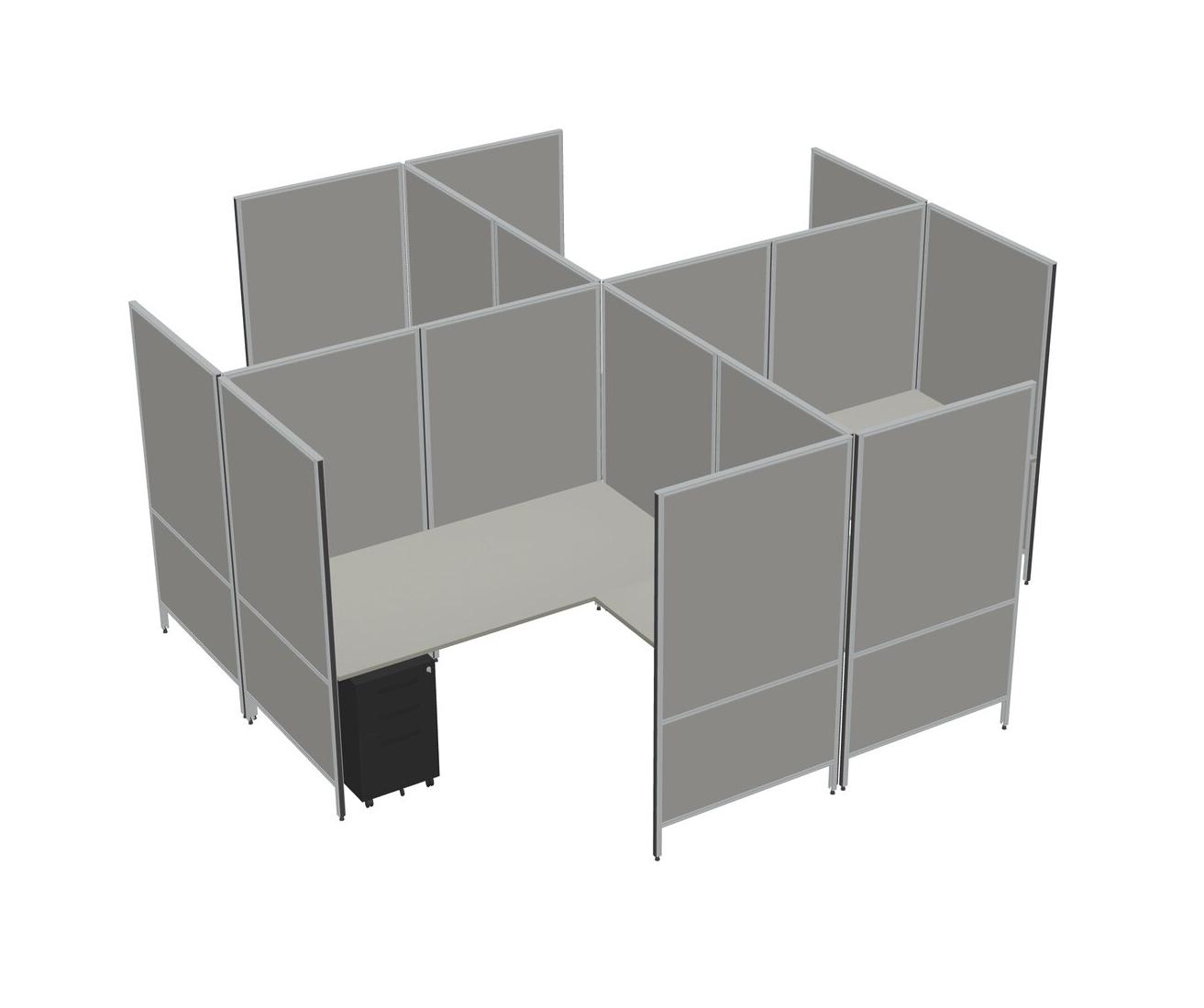 Système De Panneaux Modulaires Modernes En Forme De L Grey Shadows + Tiroirs Mobiles En Métal