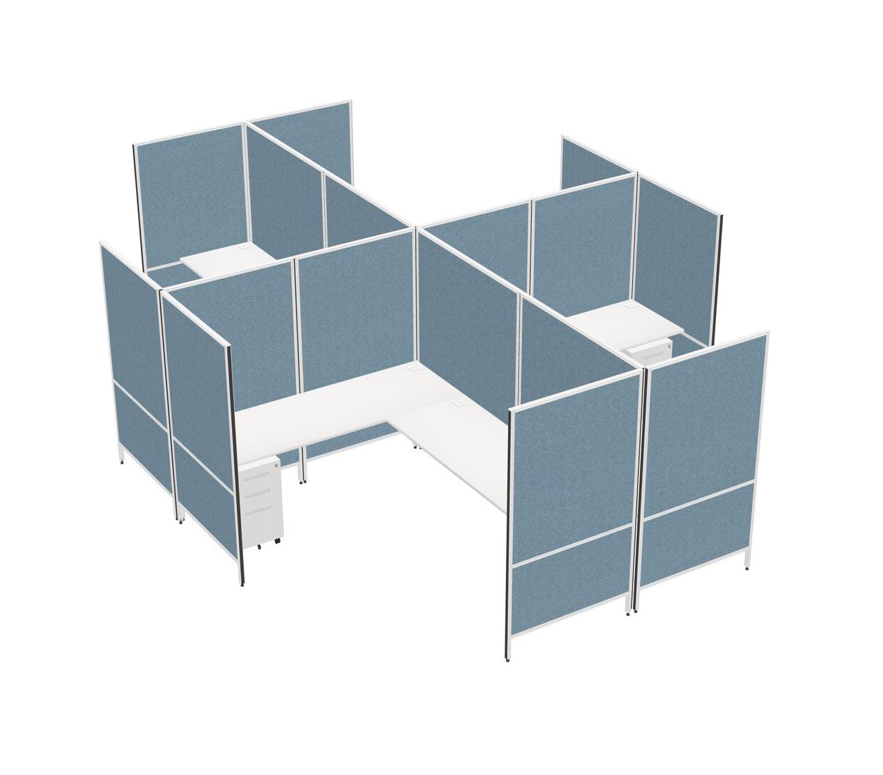 Système De Panneaux Modulaires Modernes Blancs En Forme De L à Quatre Sections + Tiroirs Mobiles En Métal