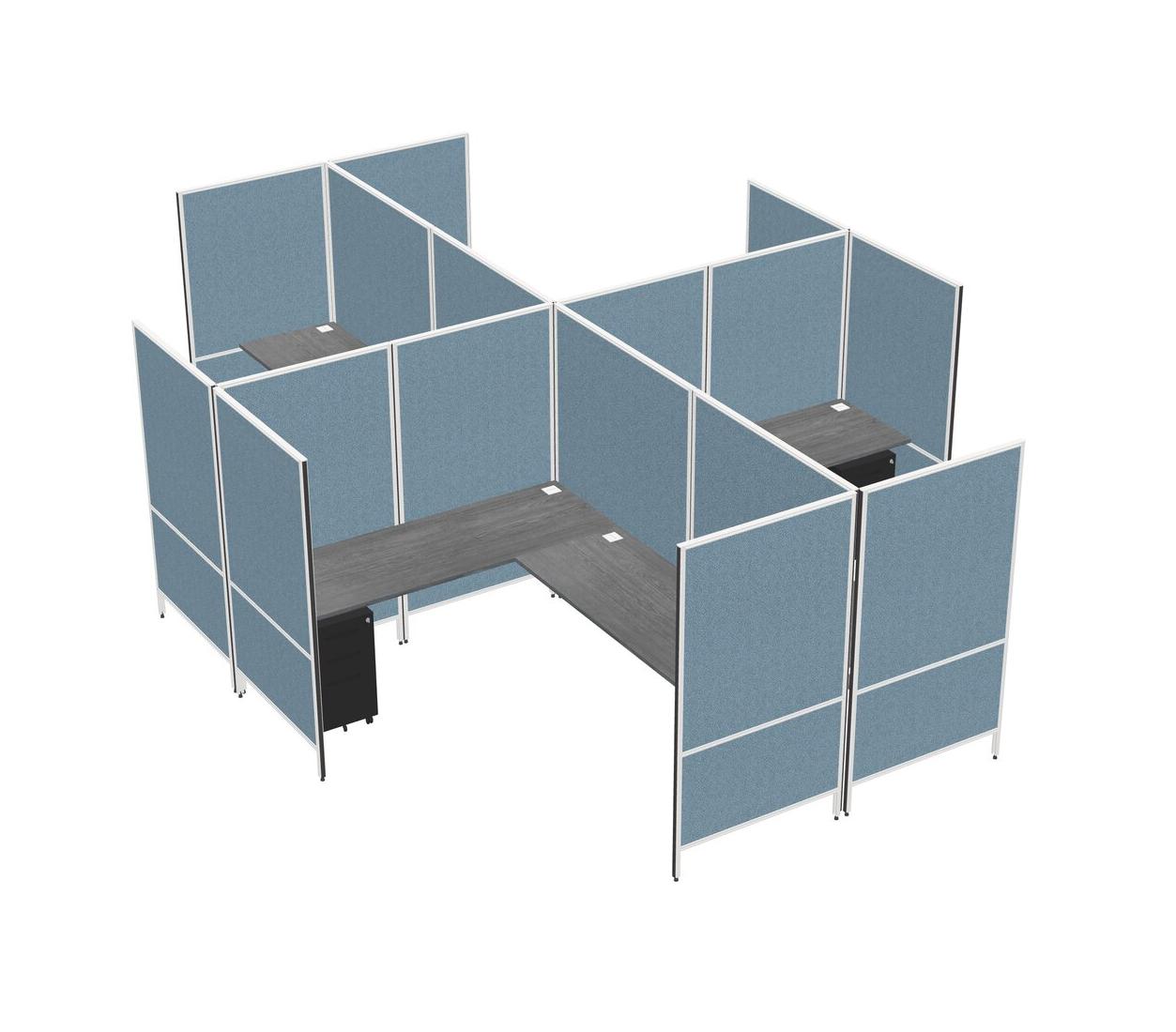 Système De Panneaux Modulaires Modernes Gris En Forme De L à Quatre Sections + Tiroirs Mobiles En Métal
