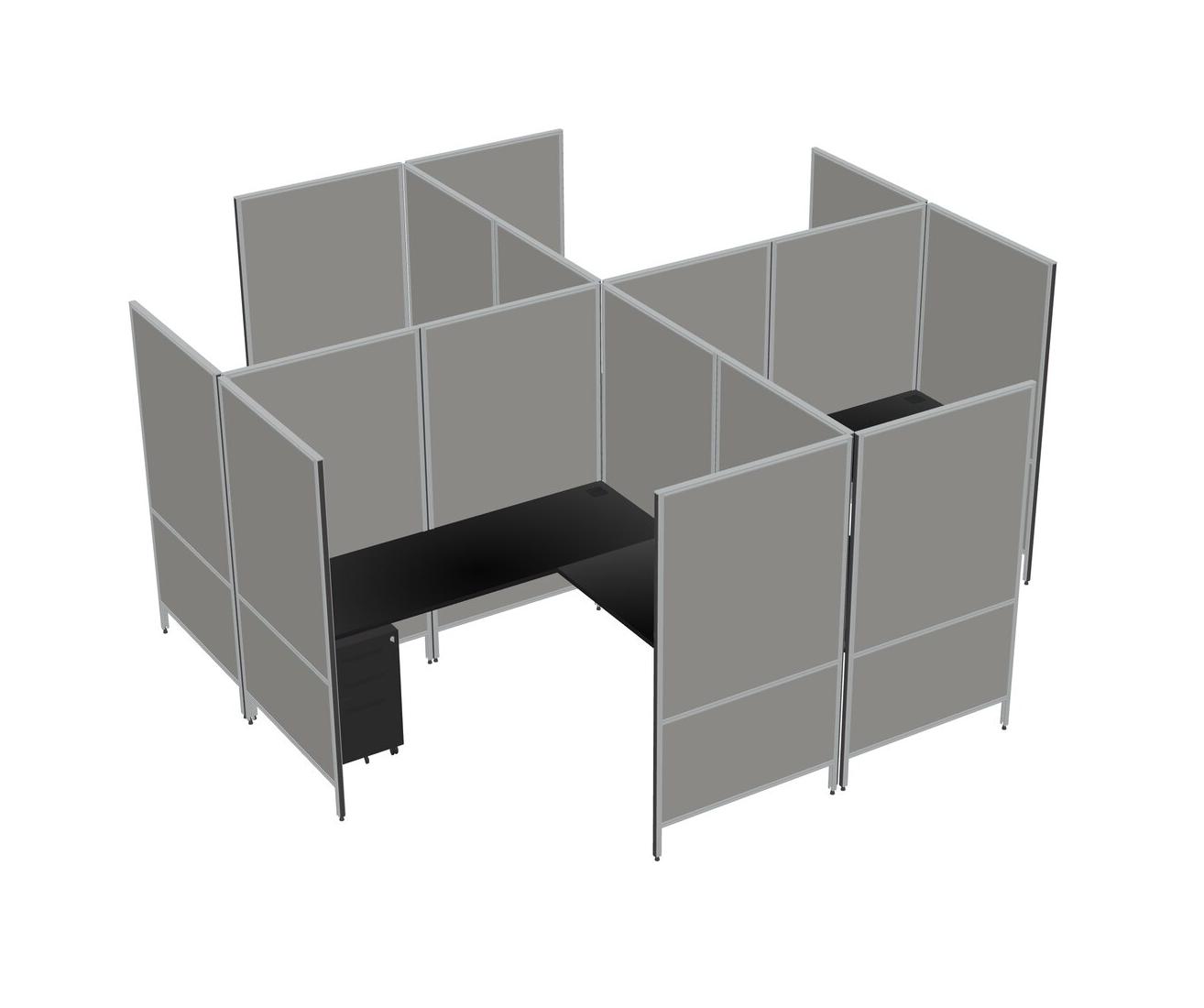 Système De Panneaux Modulaires Modernes Noirs En Forme De L à Quatre Sections + Tiroirs Mobiles En Métal