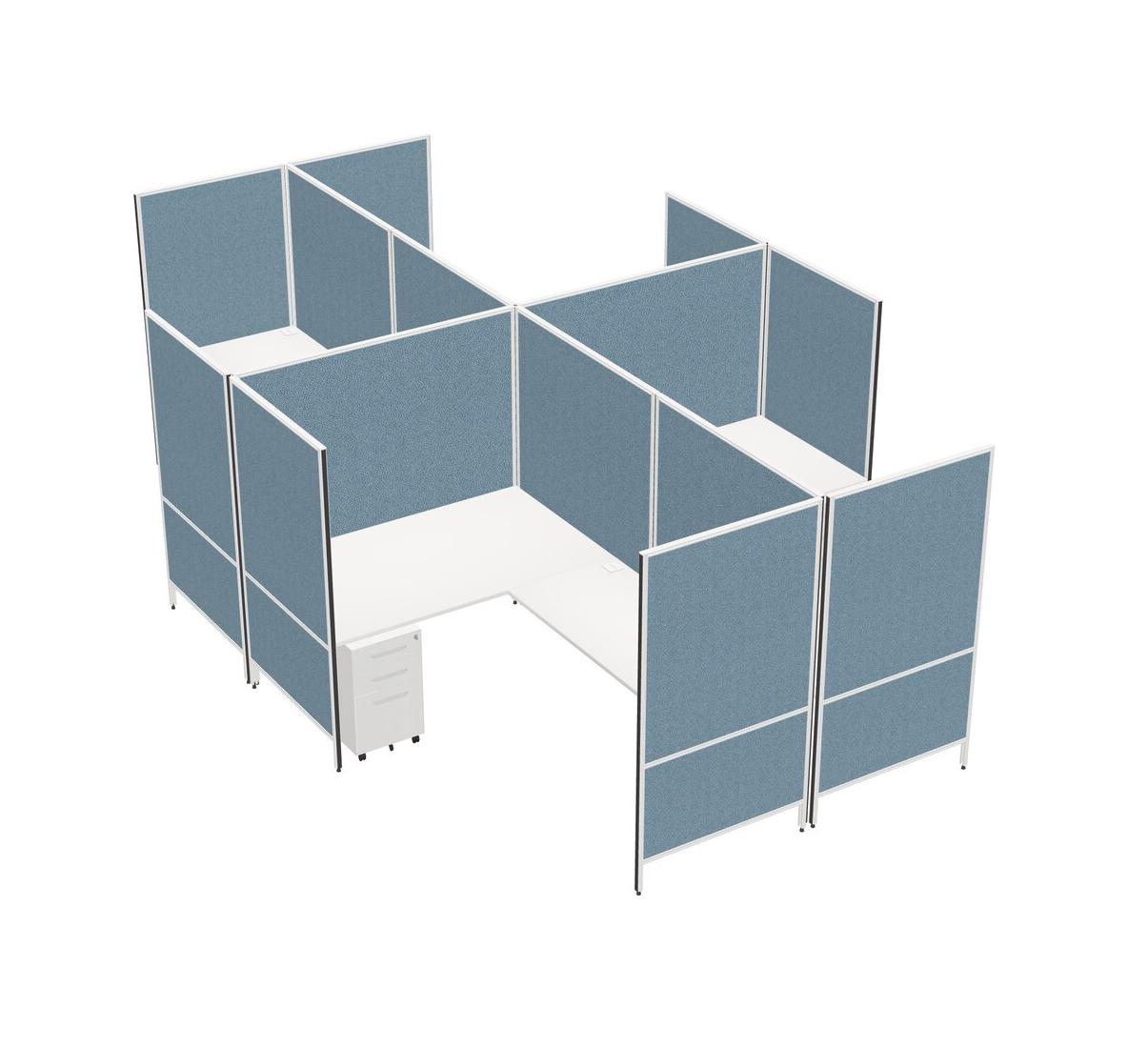 Système De Panneaux Modulaires Modernes Blancs En Forme De L à Quatre Sections + Tiroirs Mobiles En Métal