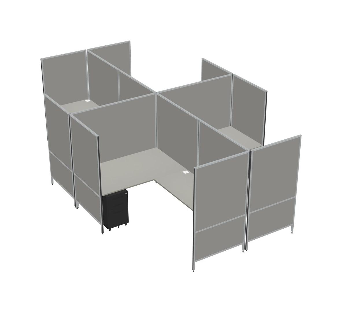 Système De Panneaux Modulaires Modernes En Forme De L Grey Shadows + Tiroirs Mobiles En Métal