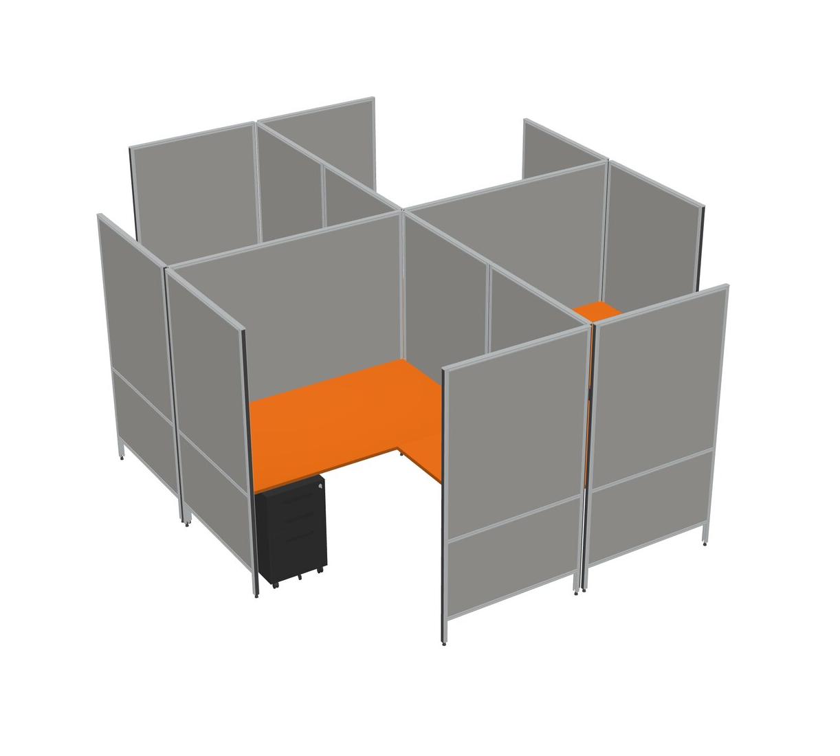 Système De Panneaux Modulaires Modernes Orange En Forme De L + Tiroirs Mobiles En Métal
