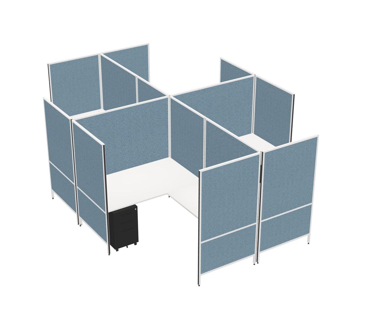 Système De Panneaux Modulaires Modernes Blancs En Forme De L à Quatre Sections + Tiroirs Mobiles En Métal