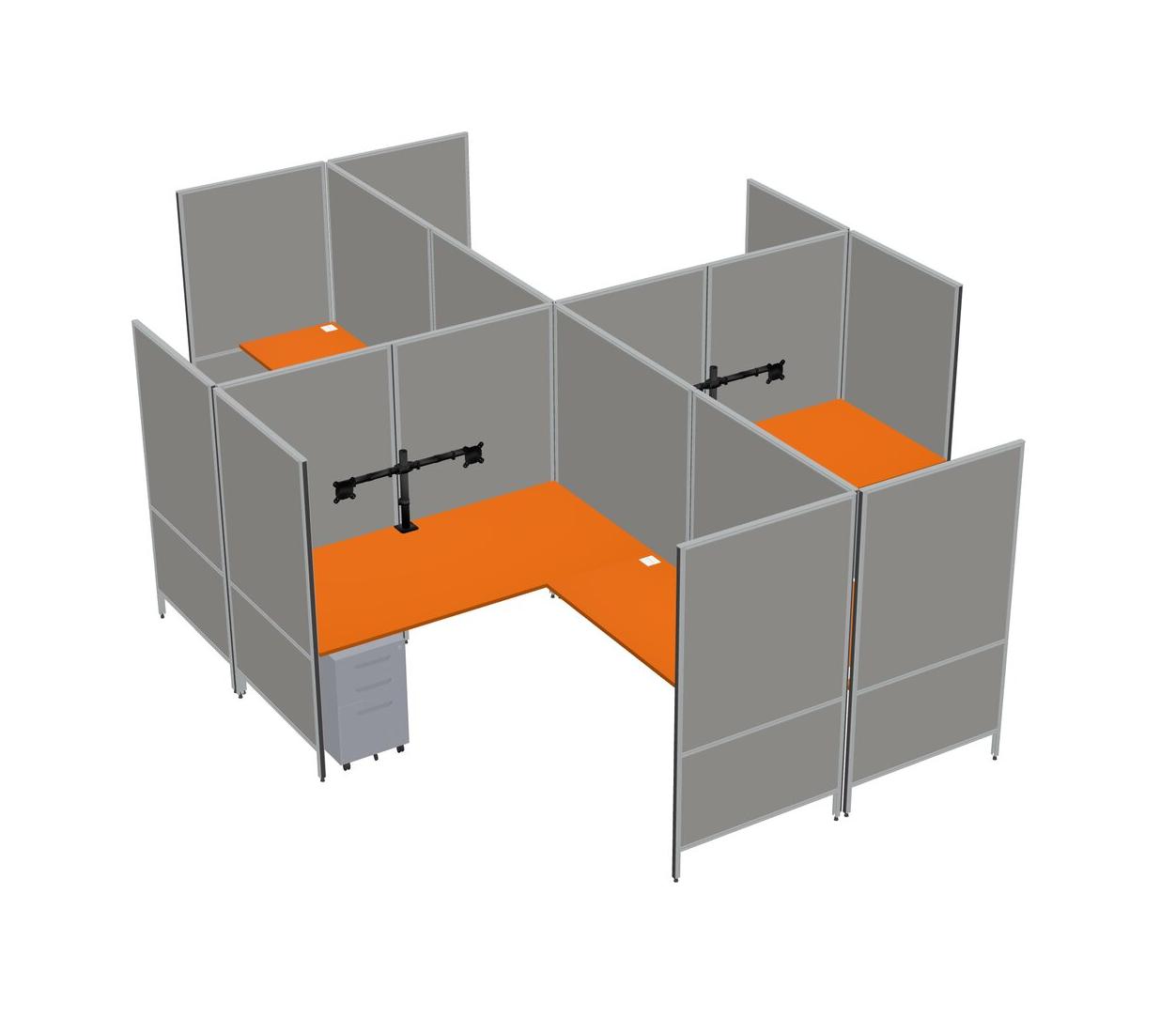 Système De Panneaux Modulaires Modernes Orange En Forme De L + Tiroirs Mobiles En Métal + Bras Pour écran (double Bras)