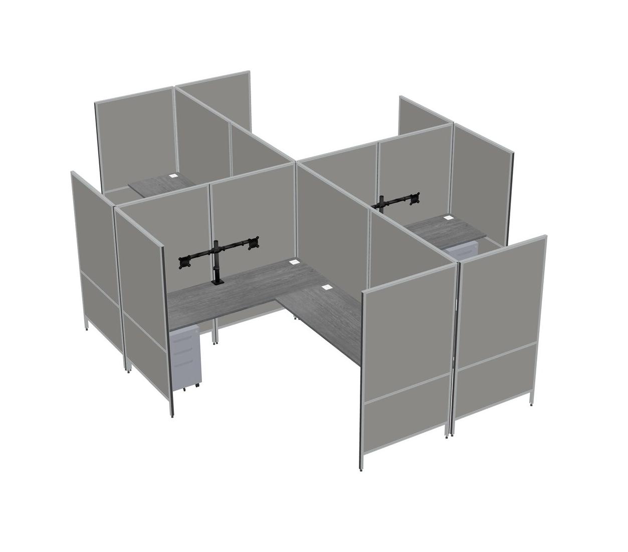 Système De Panneaux Modulaires Modernes Gris En Forme De L + Tiroirs Mobiles En Métal + Bras Pour écran (double Bras)