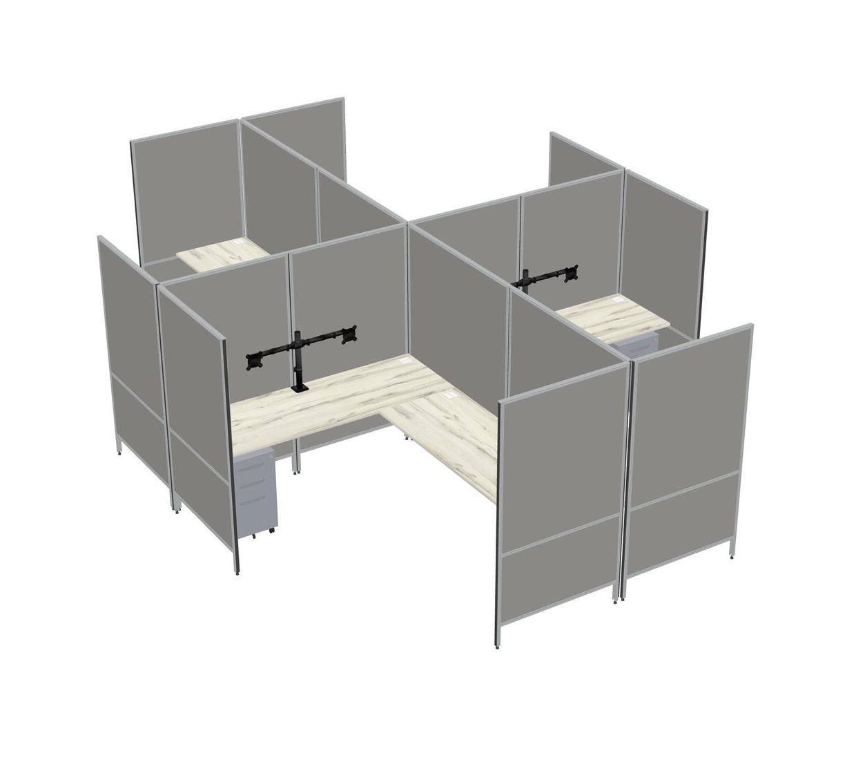 Système De Panneaux Modulaires Modernes En Forme De L Heinne Holz + Tiroirs Mobiles En Métal + Bras Pour écran (double Bras)