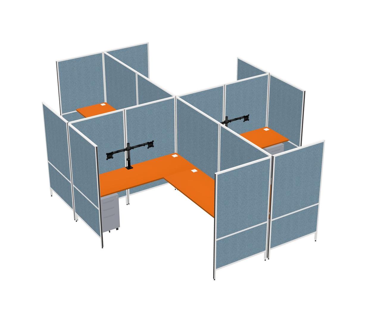 Système De Panneaux Modulaires Modernes Orange En Forme De L + Tiroirs Mobiles En Métal + Bras Pour écran (double Bras)