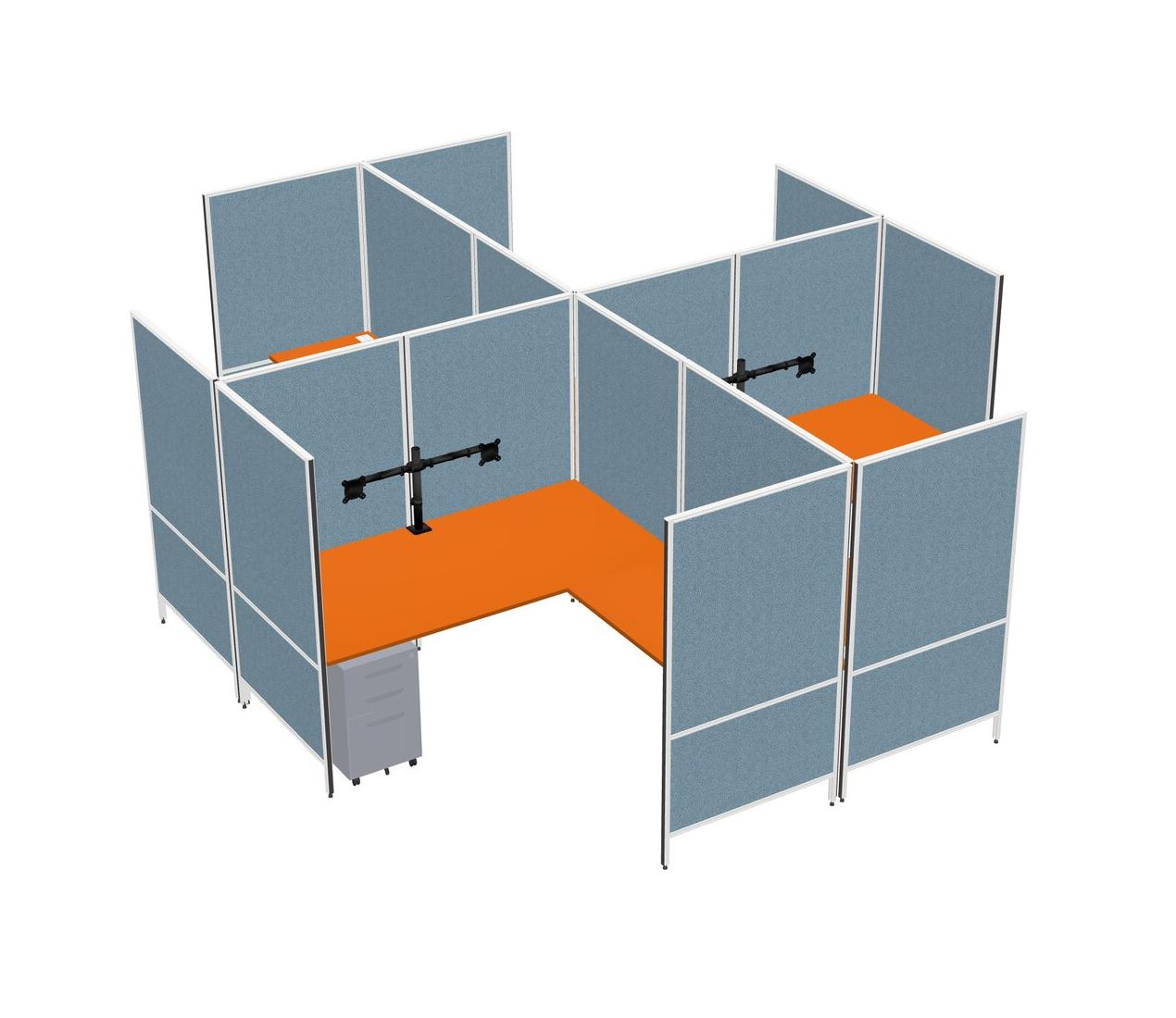 Système De Panneaux Modulaires Modernes Orange En Forme De L + Tiroirs Mobiles En Métal + Bras Pour écran (double Bras)