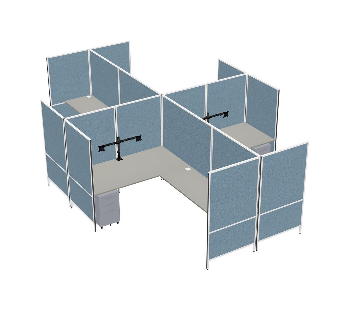 Système De Panneaux Modulaires Modernes En Forme De L Grey Shadows + Tiroirs Mobiles En Métal + Bras Pour écran (double Bras)