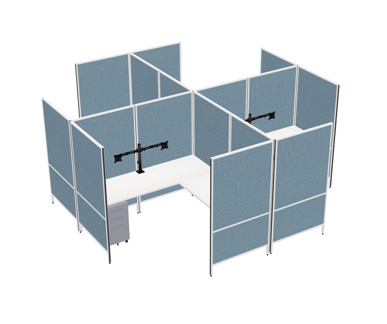 Système De Panneaux Modulaires Modernes Blancs En Forme De L + Tiroirs Mobiles En Métal + Bras Pour écran (double Bras)