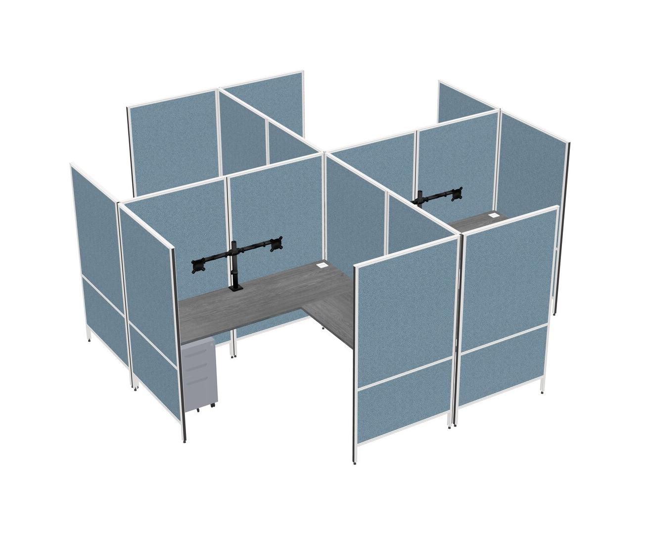 Système De Panneaux Modulaires Modernes Gris En Forme De L + Tiroirs Mobiles En Métal + Bras Pour écran (double Bras)