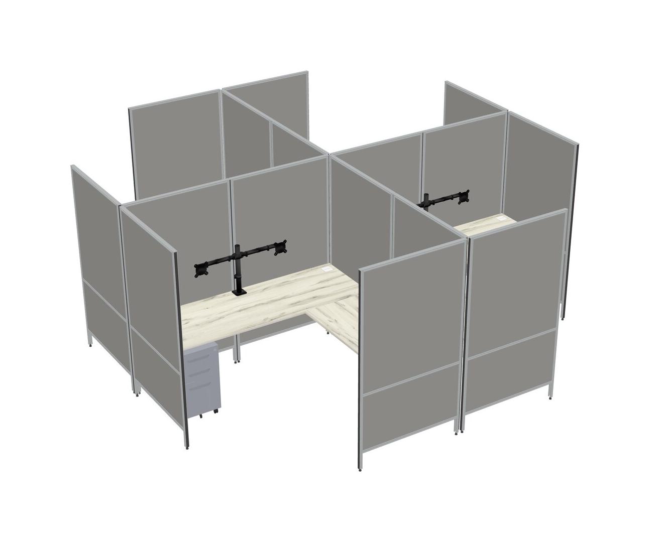 Système De Panneaux Modulaires Modernes En Forme De L Heinne Holz + Tiroirs Mobiles En Métal + Bras Pour écran (double Bras)