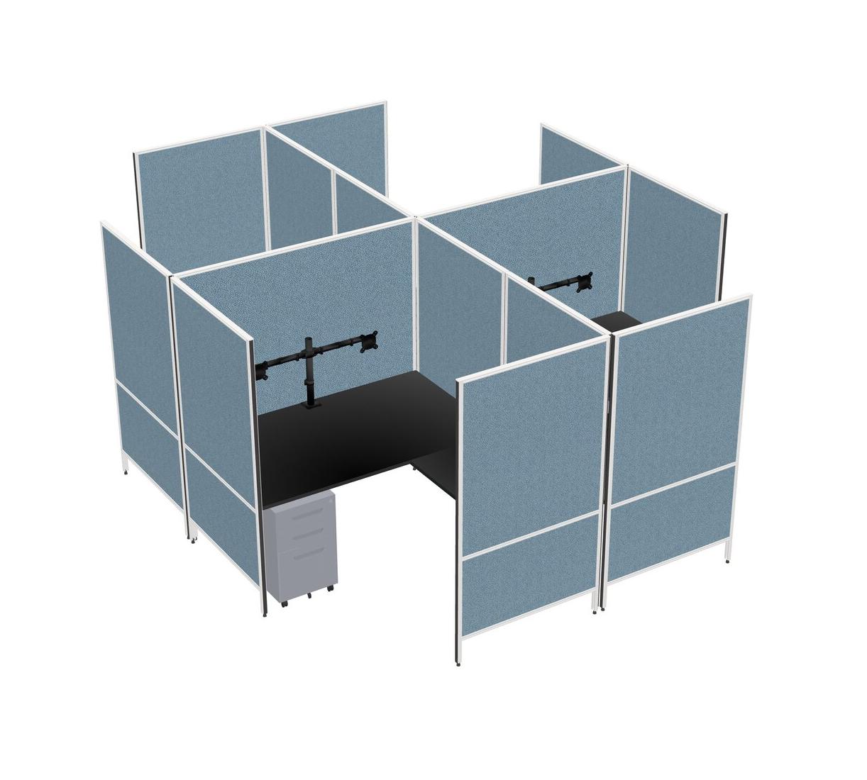 Système De Panneaux Modulaires Modernes Noirs En Forme De L + Tiroirs Mobiles En Métal + Bras Pour écran (double Bras)