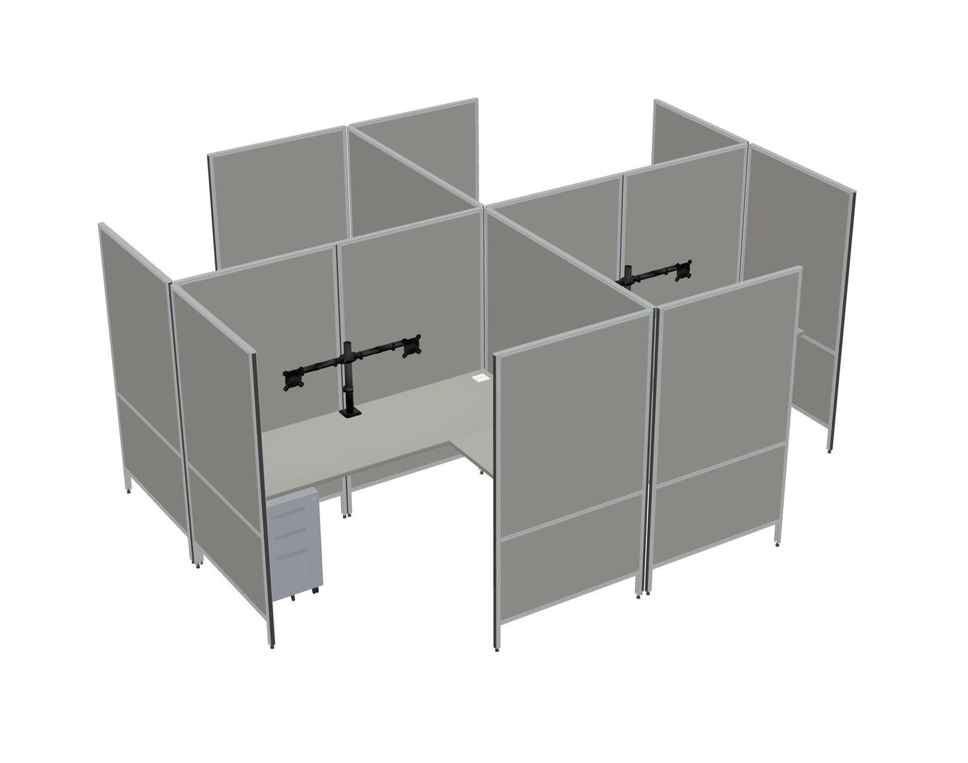 Système De Panneaux Modulaires Modernes En Forme De L Grey Shadows + Tiroirs Mobiles En Métal + Bras Pour écran (double Bras)