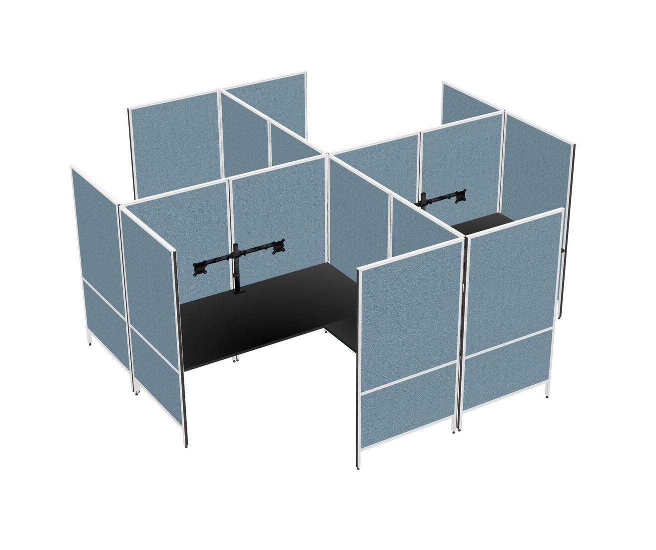 Système De Panneaux Modulaires Modernes Noirs En Forme De L à Quatre Bras + Bras De Moniteur (double Bras)