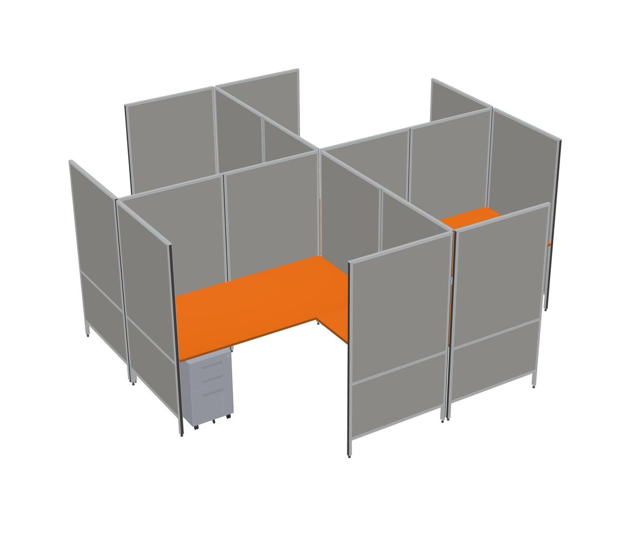 Système De Panneaux Modulaires Modernes Orange En Forme De L + Tiroirs Mobiles En Métal