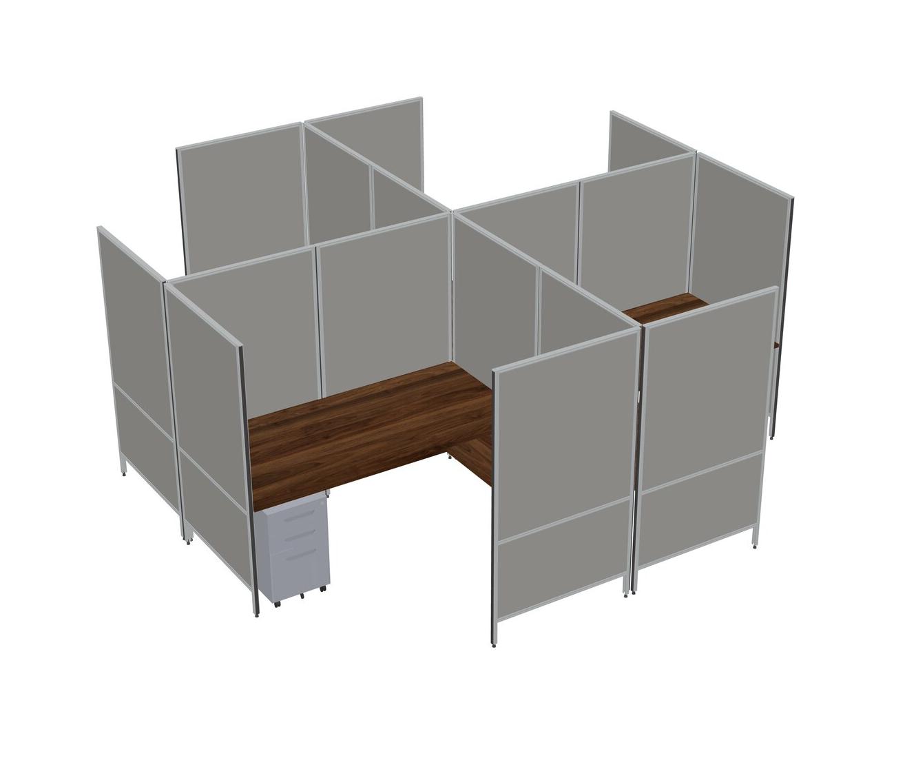 Système De Panneaux Modulaires Modernes En Forme De L à Quatre Sections En Noyer Columbia + Tiroirs Mobiles En Métal