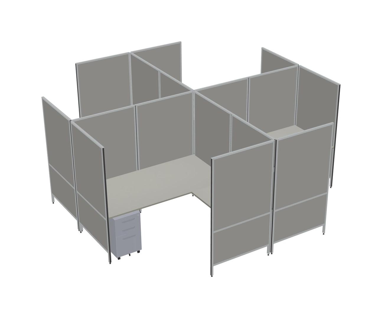 Système De Panneaux Modulaires Modernes En Forme De L Grey Shadows + Tiroirs Mobiles En Métal