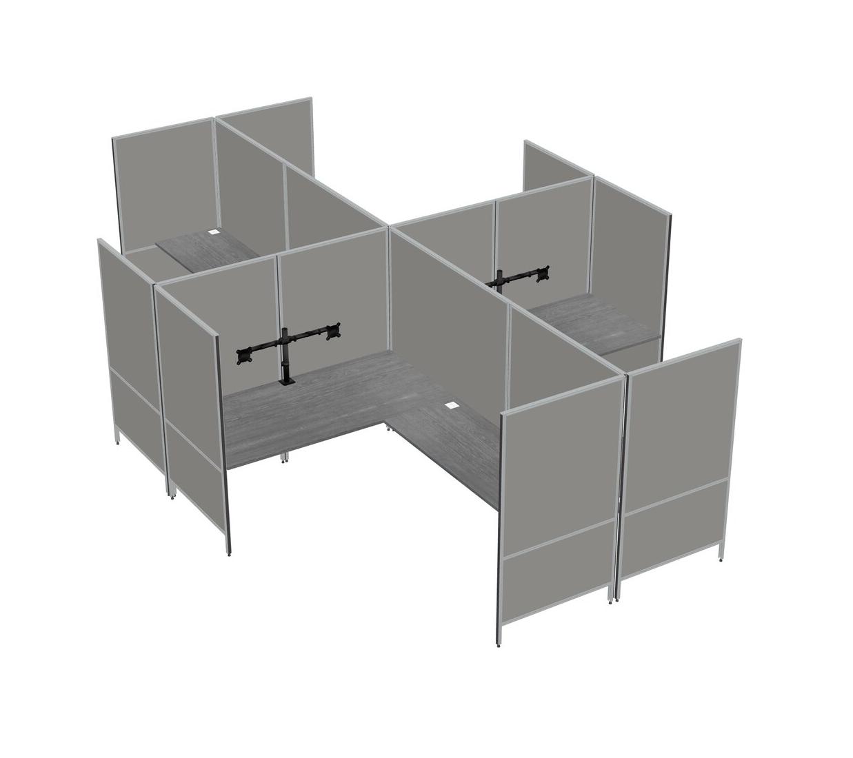 Système De Panneaux Modulaires Modernes Gris En Forme De L à Quatre Bras + Bras De Moniteur (double Bras)