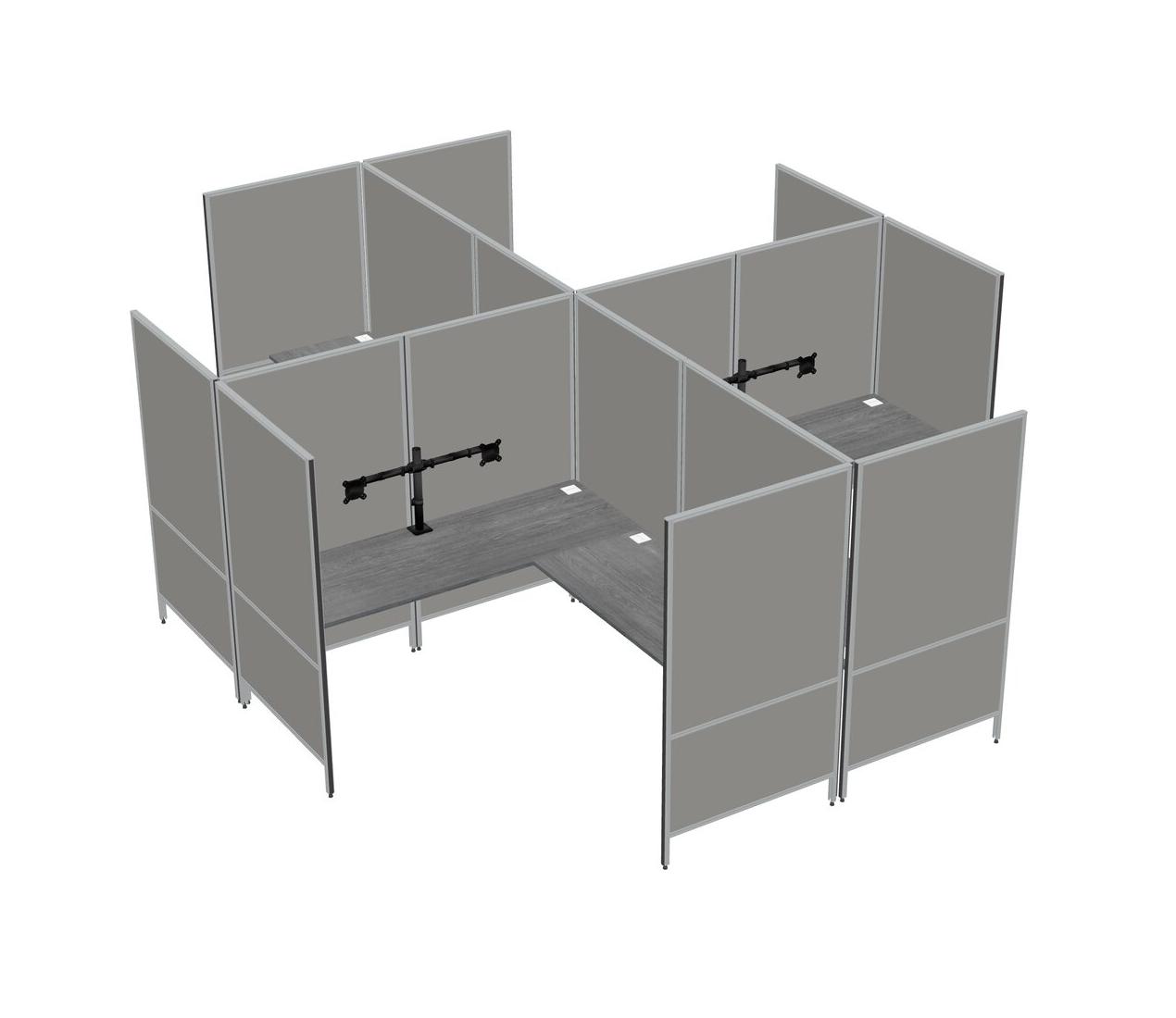 Système De Panneaux Modulaires Modernes Gris En Forme De L à Quatre Bras + Bras De Moniteur (double Bras)