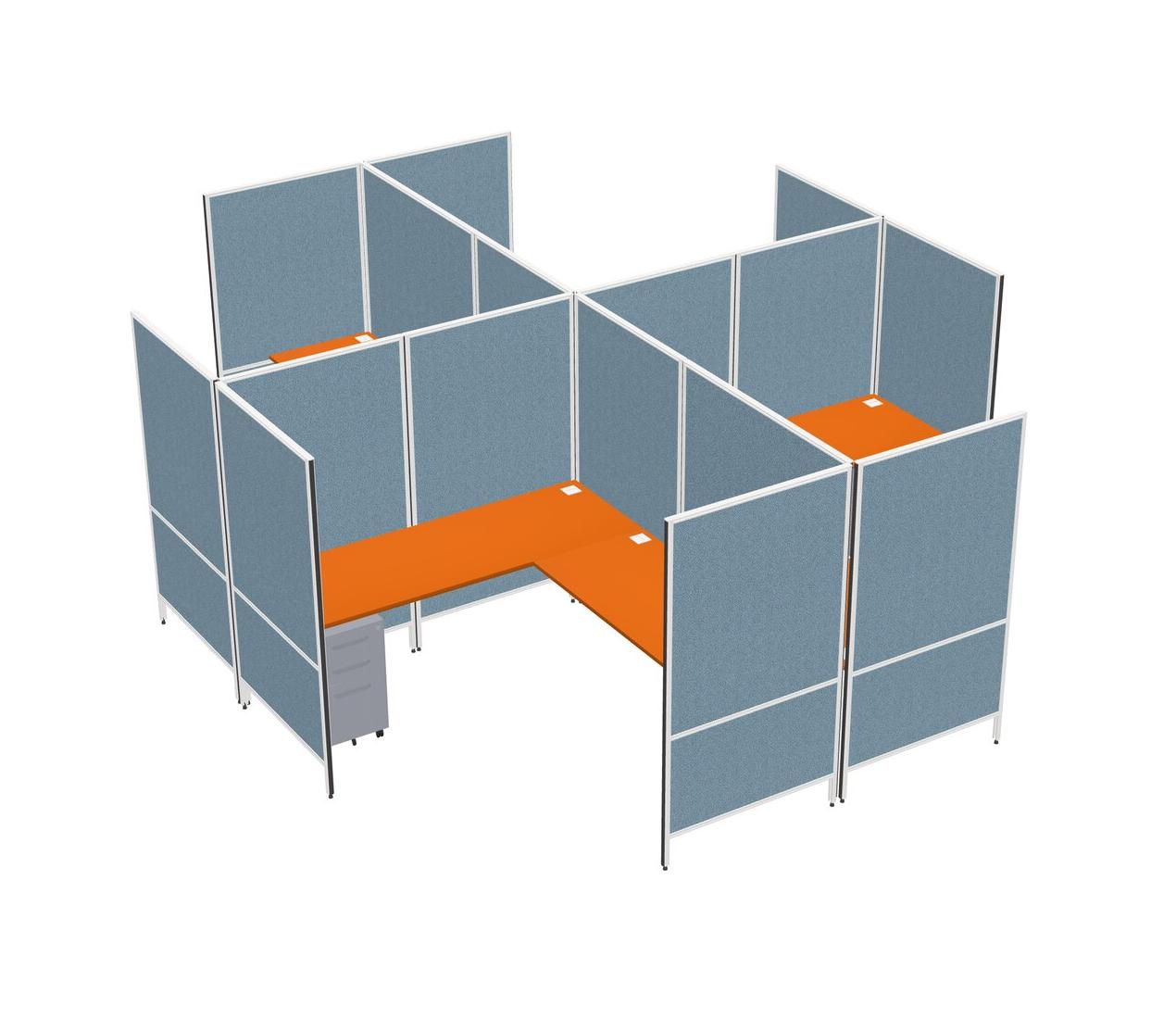 Système De Panneaux Modulaires Modernes Orange En Forme De L + Tiroirs Mobiles En Métal