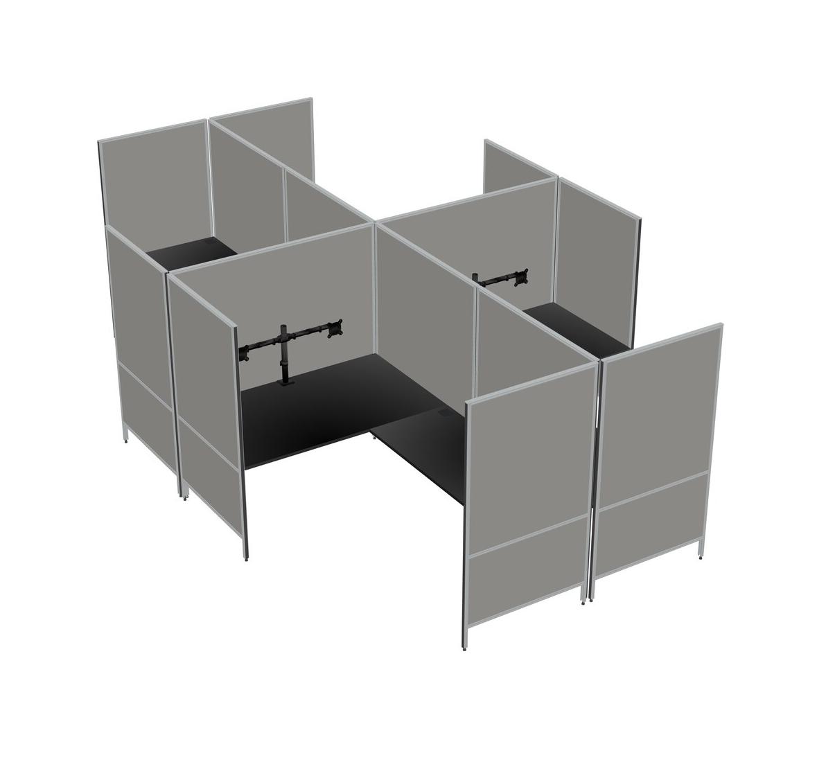 Système De Panneaux Modulaires Modernes Noirs En Forme De L à Quatre Bras + Bras De Moniteur (double Bras)