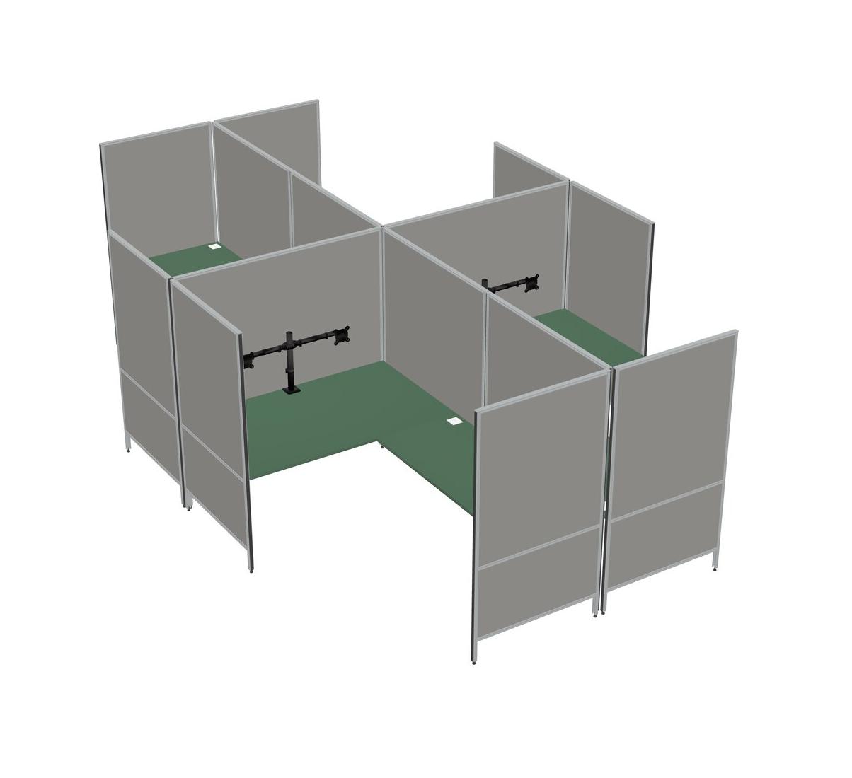 Système De Panneaux Modulaires Modernes Verts En Forme De L à Quatre Bras + Bras De Moniteur (double Bras)