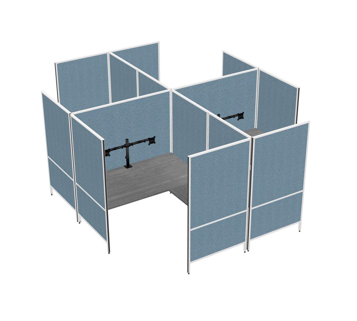 Système De Panneaux Modulaires Modernes Gris En Forme De L à Quatre Bras + Bras De Moniteur (double Bras)