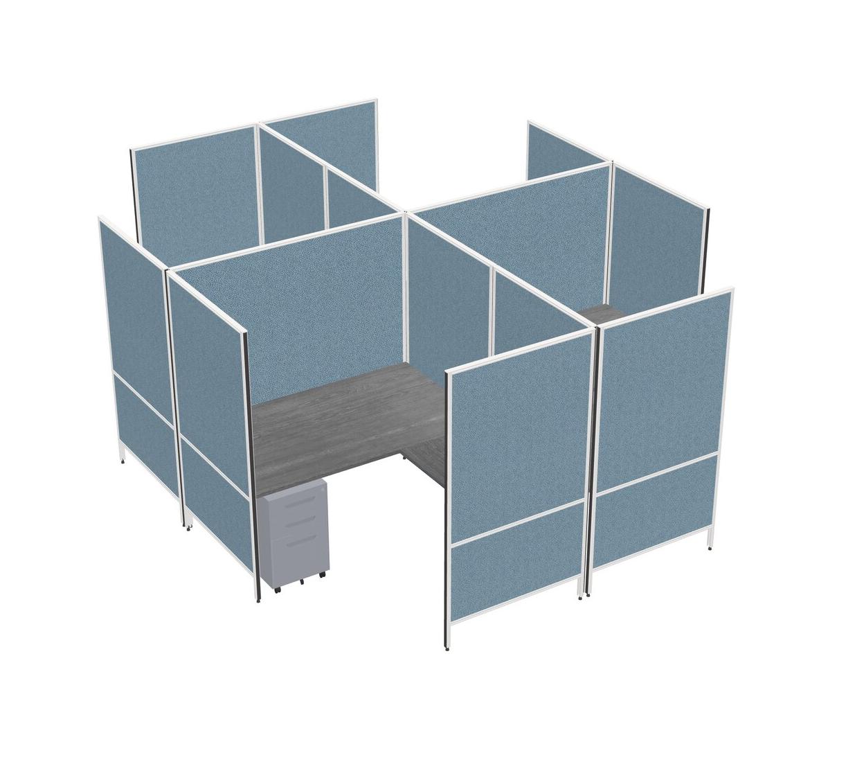 Système De Panneaux Modulaires Modernes Gris En Forme De L à Quatre Sections + Tiroirs Mobiles En Métal