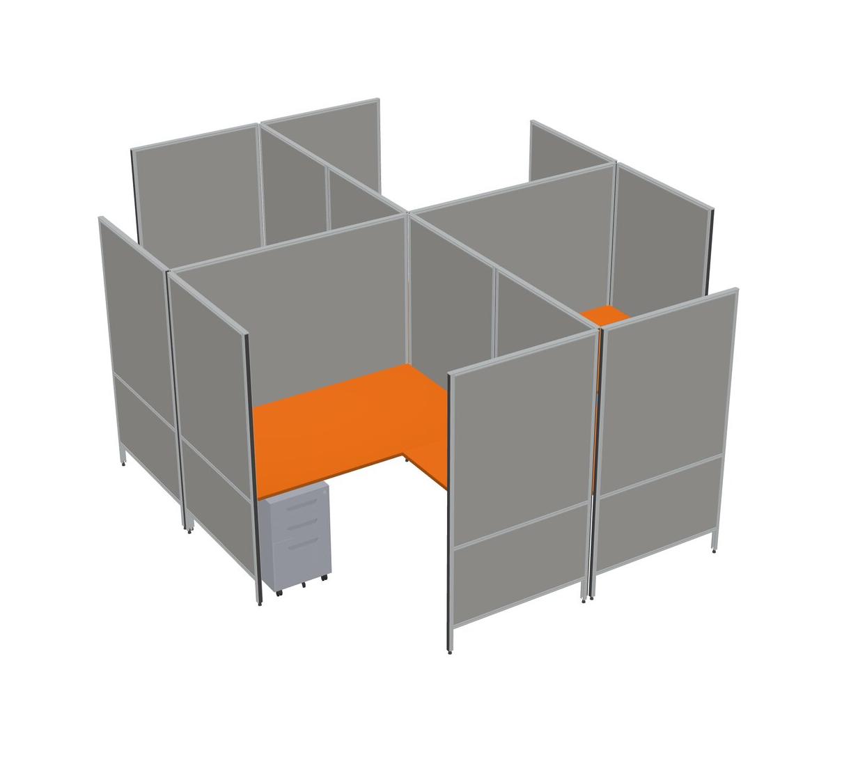 Système De Panneaux Modulaires Modernes Orange En Forme De L + Tiroirs Mobiles En Métal