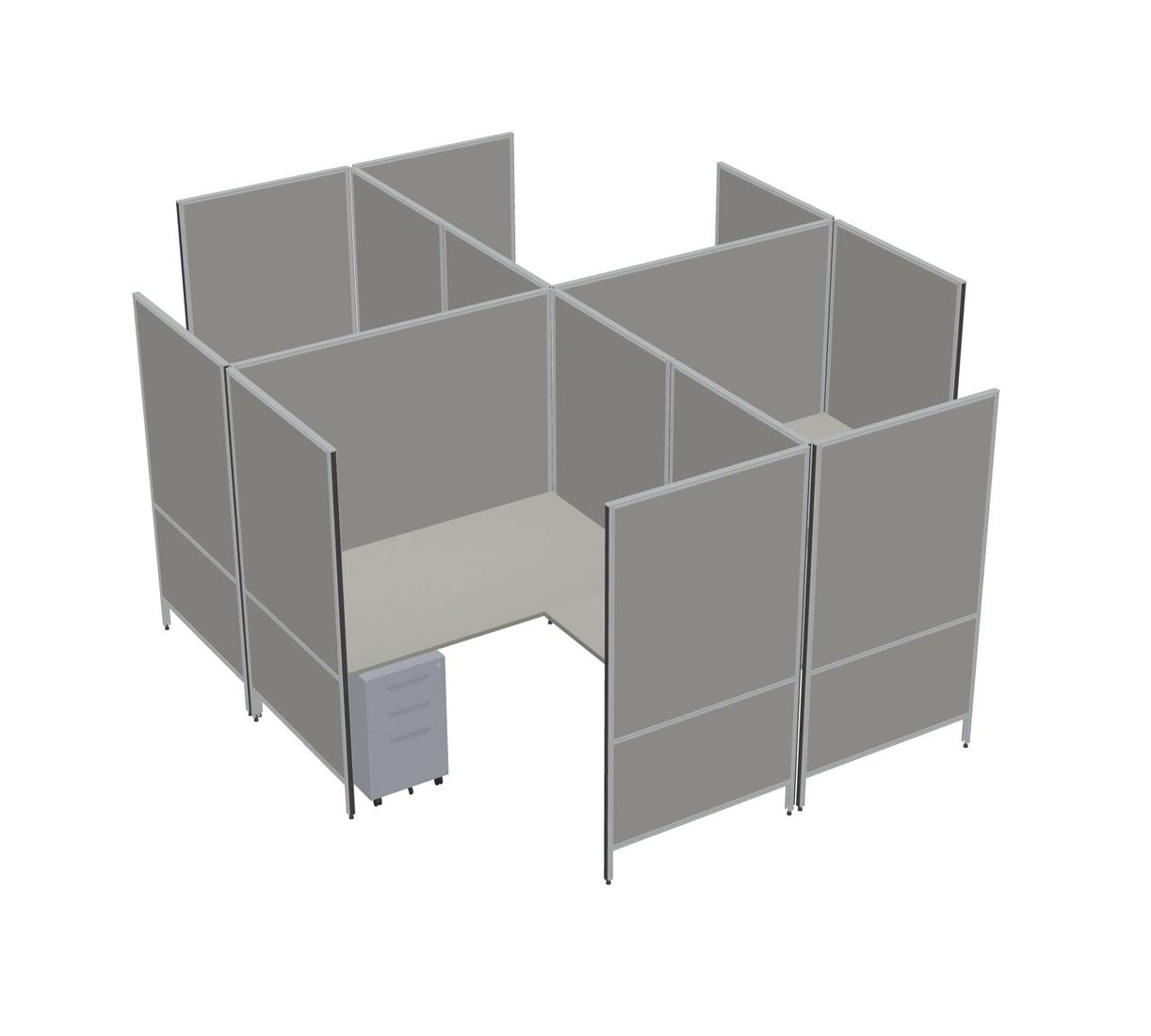 Système De Panneaux Modulaires Modernes En Forme De L Grey Shadows + Tiroirs Mobiles En Métal