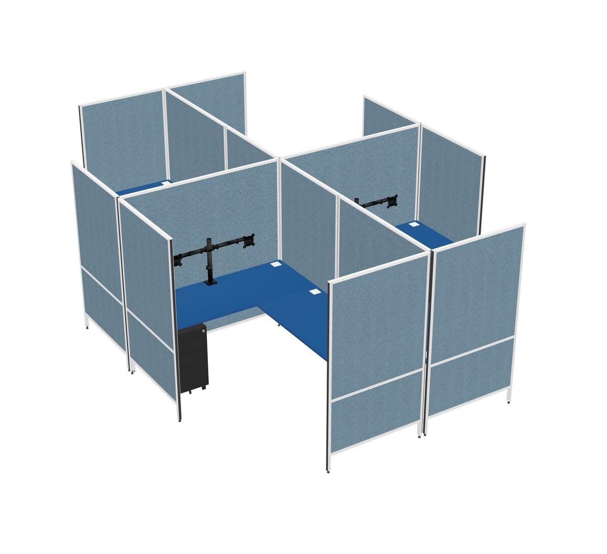 Système De Panneaux Modulaires Modernes En Forme De L Prism Blue + Tiroirs Mobiles En Métal + Bras Pour écran (double Bras)