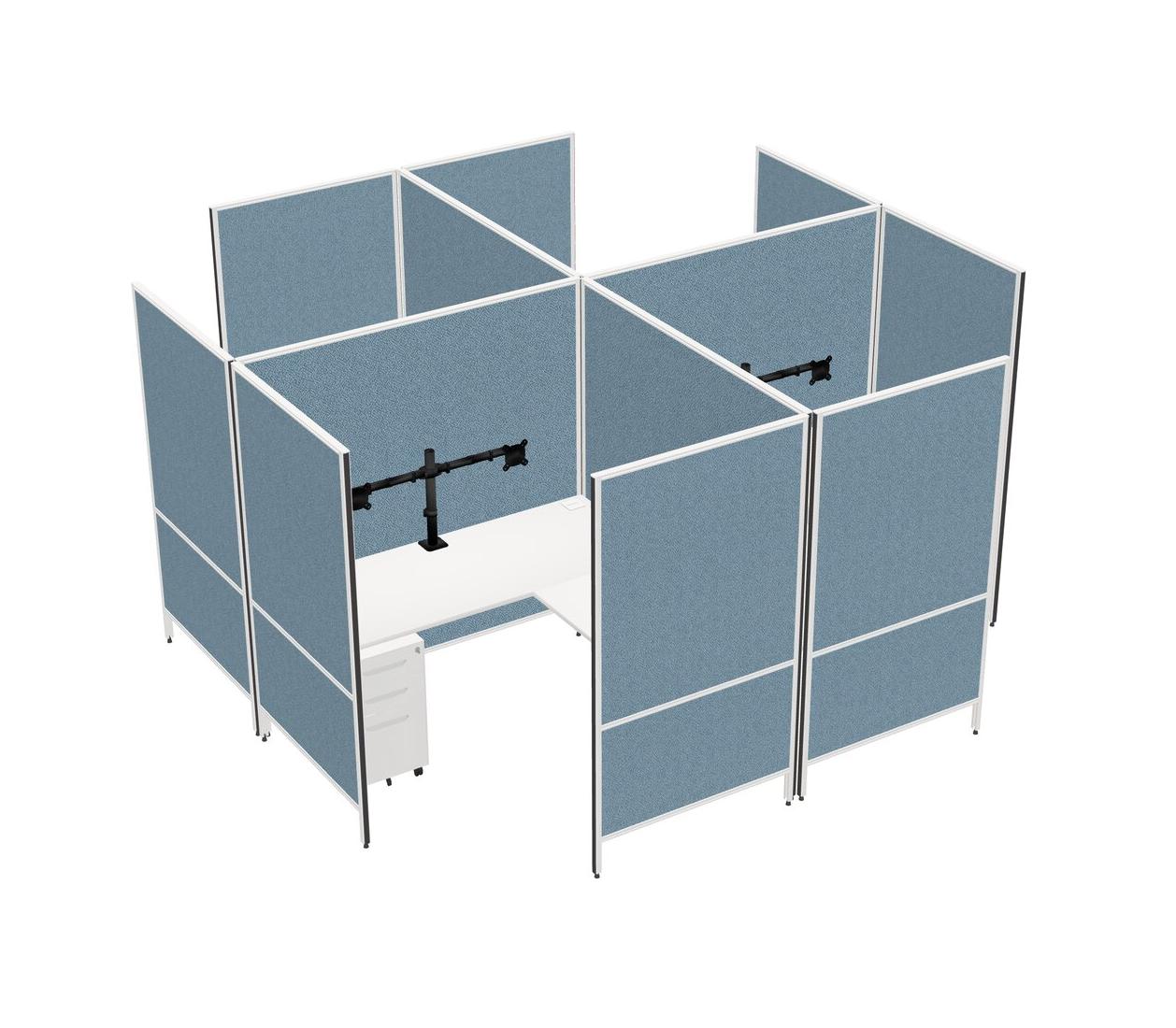 Système De Panneaux Modulaires Modernes Blancs En Forme De L + Tiroirs Mobiles En Métal + Bras Pour écran (double Bras)