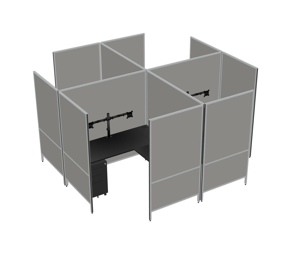 Système De Panneaux Modulaires Modernes Noirs En Forme De L + Tiroirs Mobiles En Métal + Bras Pour écran (double Bras)