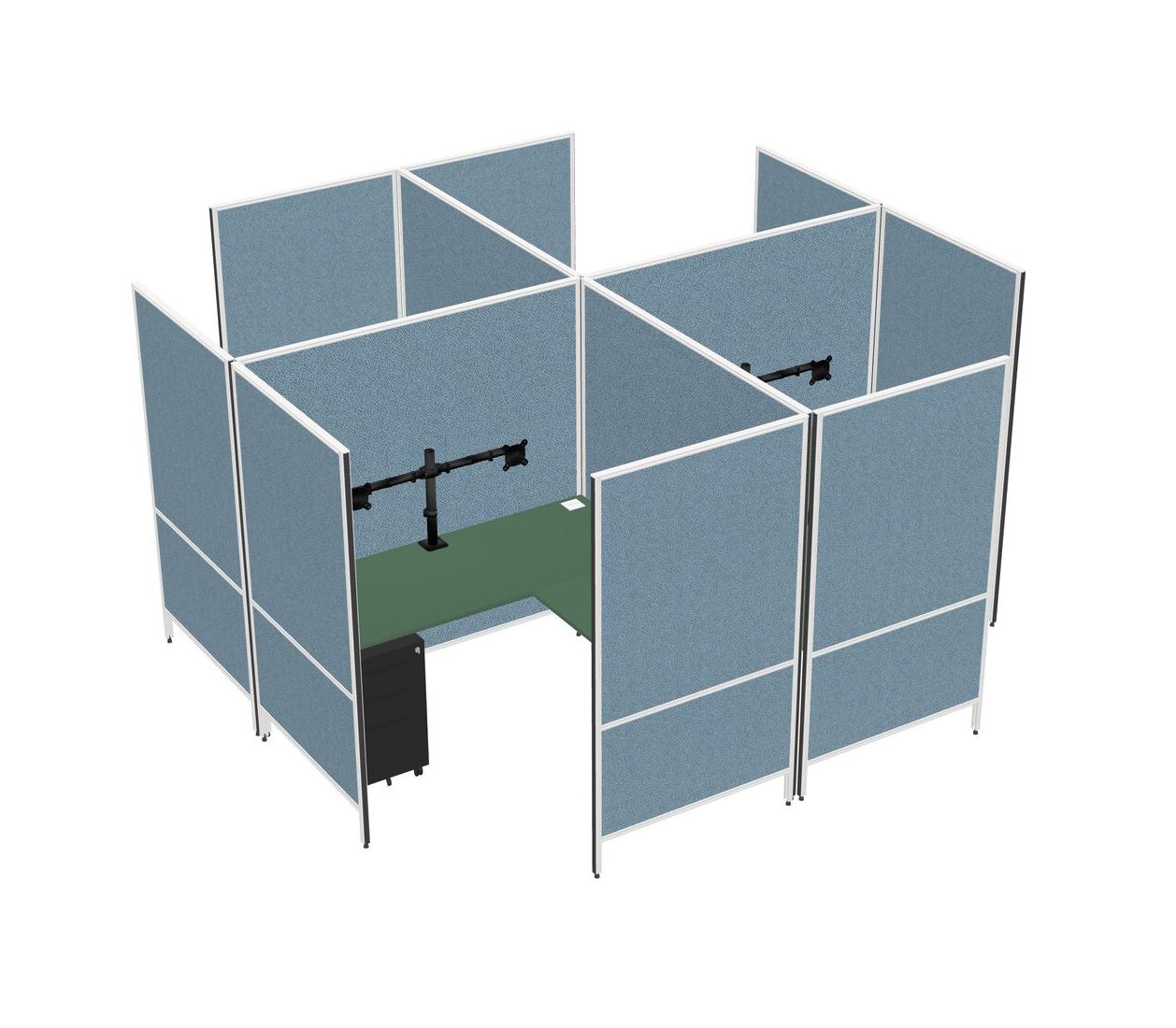 Système De Panneaux Modulaires Modernes Verts En Forme De L + Tiroirs Mobiles En Métal + Bras Pour écran (double Bras)