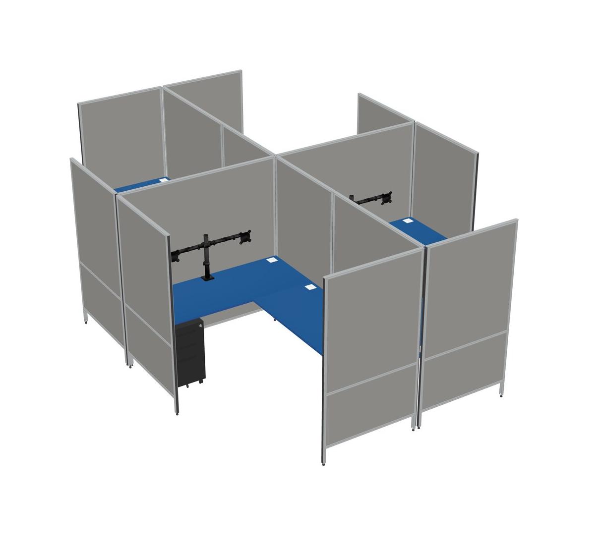 Système De Panneaux Modulaires Modernes En Forme De L Prism Blue + Tiroirs Mobiles En Métal + Bras Pour écran (double Bras)