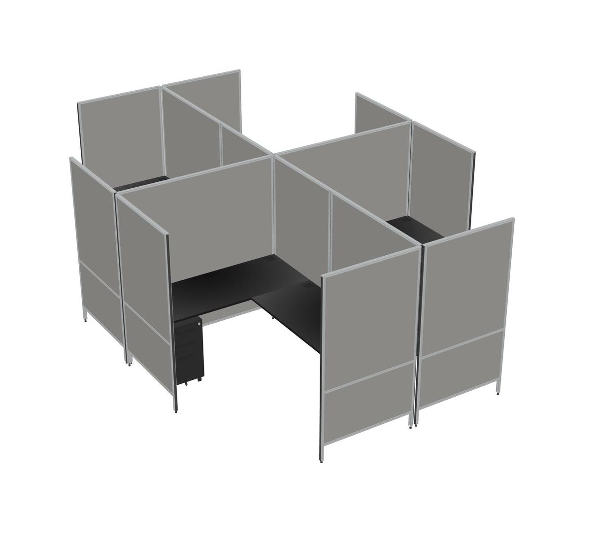 Système De Panneaux Modulaires Modernes Noirs En Forme De L à Quatre Sections + Tiroirs Mobiles En Métal