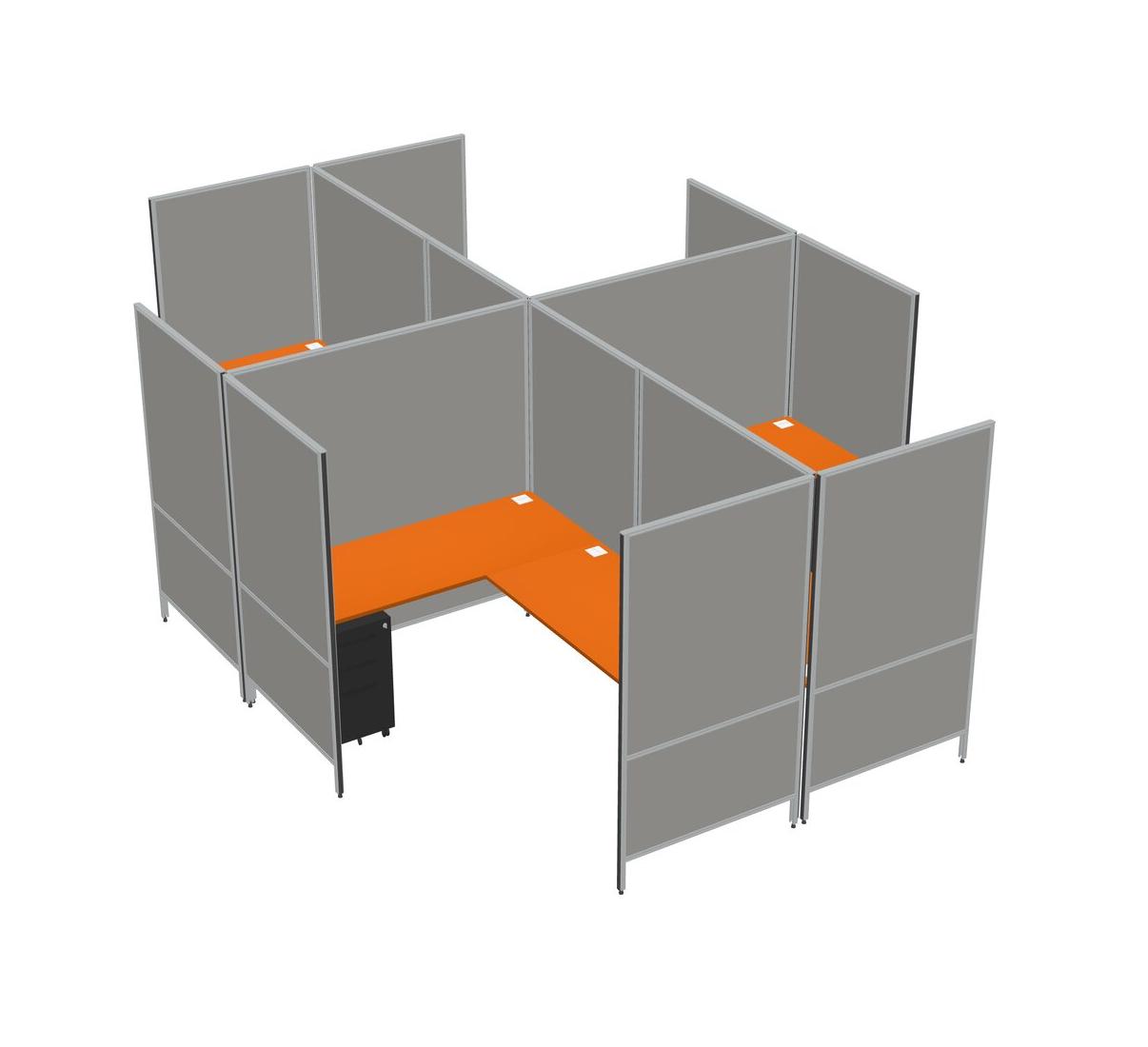 Système De Panneaux Modulaires Modernes Orange En Forme De L + Tiroirs Mobiles En Métal