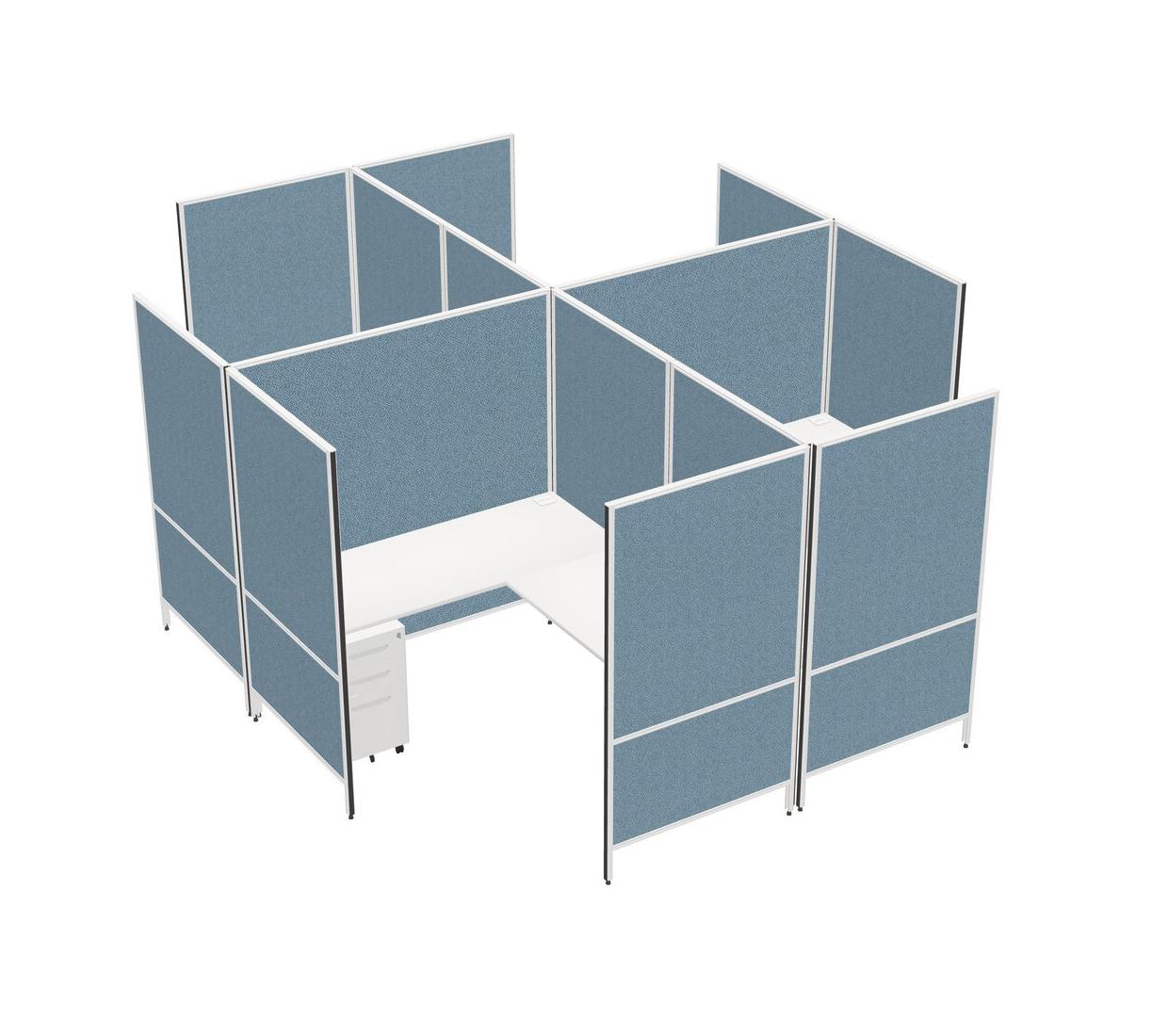 Système De Panneaux Modulaires Modernes Blancs En Forme De L à Quatre Sections + Tiroirs Mobiles En Métal