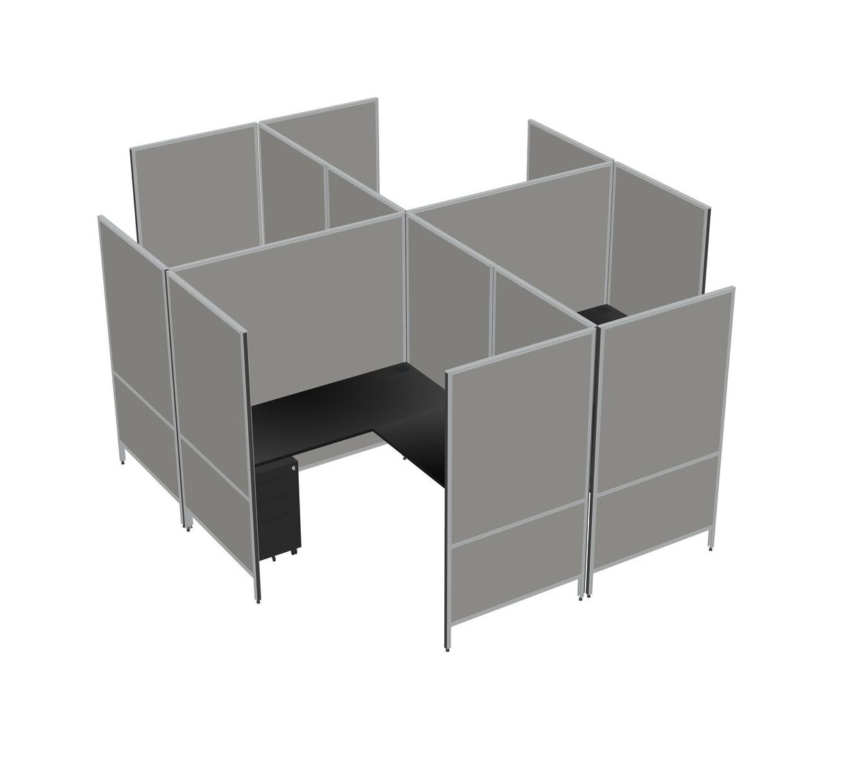 Système De Panneaux Modulaires Modernes Noirs En Forme De L à Quatre Sections + Tiroirs Mobiles En Métal