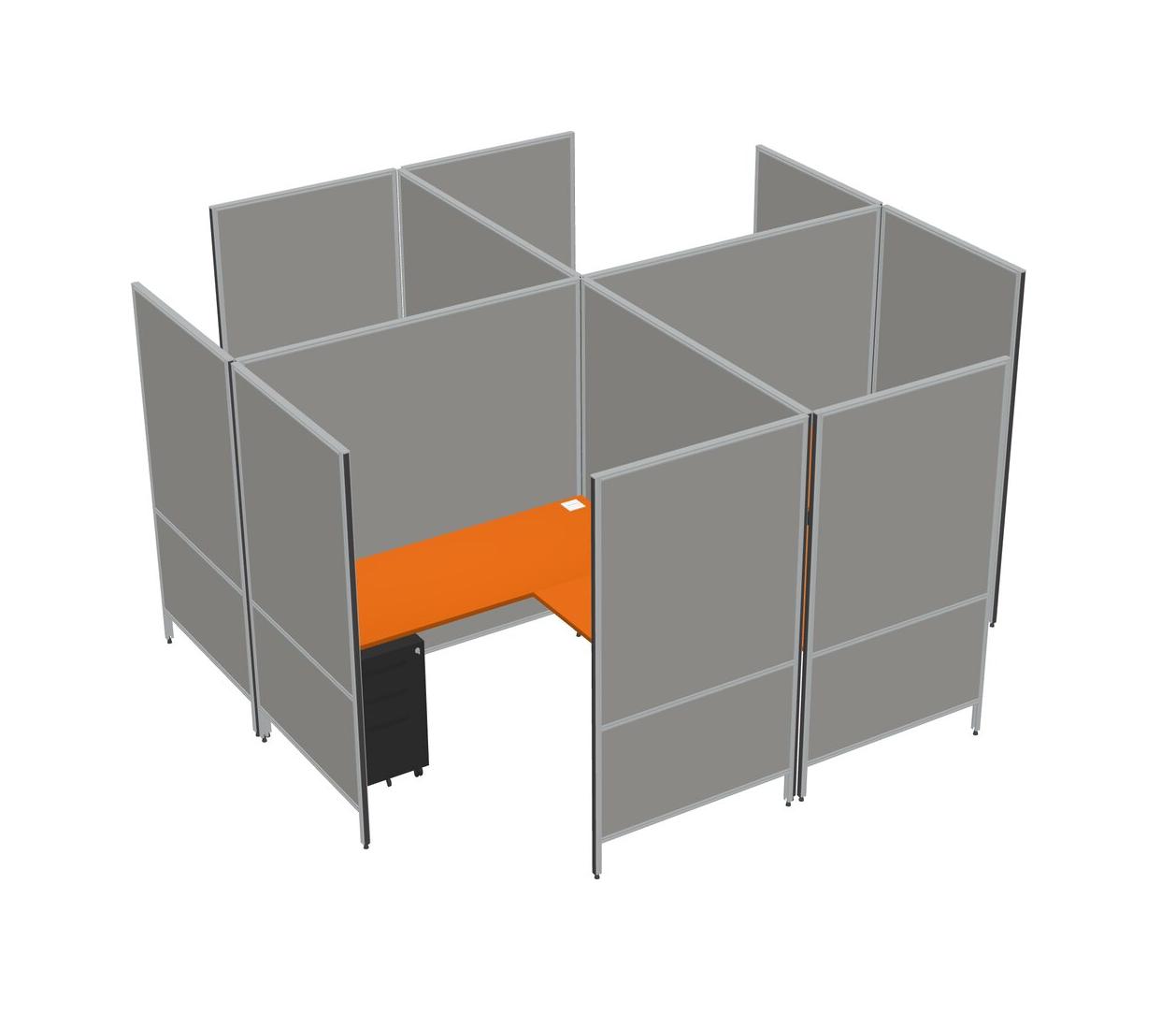 Système De Panneaux Modulaires Modernes Orange En Forme De L + Tiroirs Mobiles En Métal