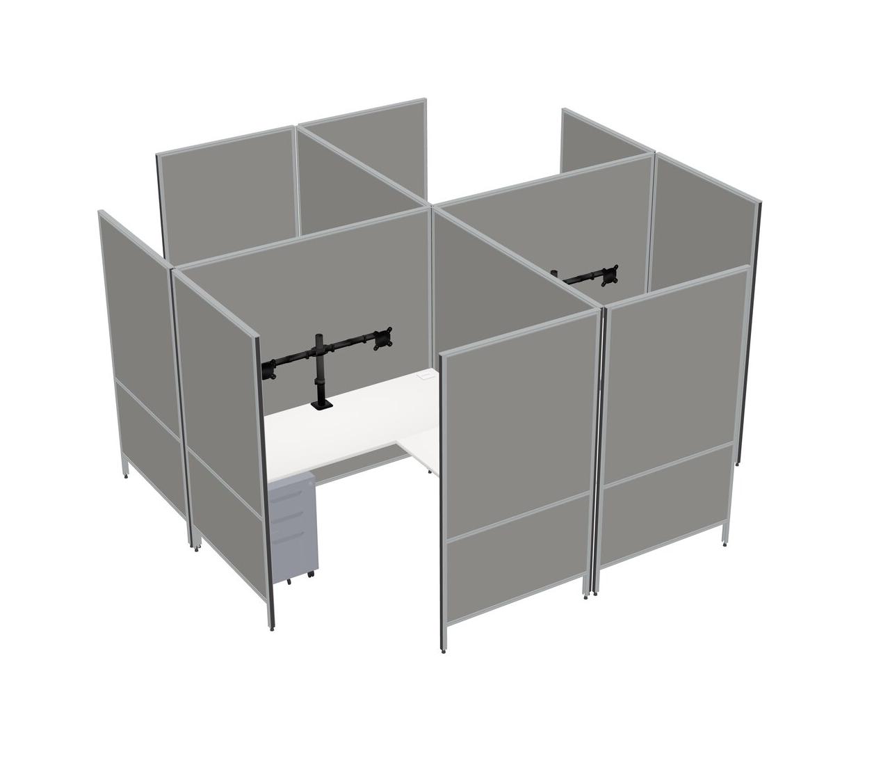 Système De Panneaux Modulaires Modernes Blancs En Forme De L + Tiroirs Mobiles En Métal + Bras Pour écran (double Bras)