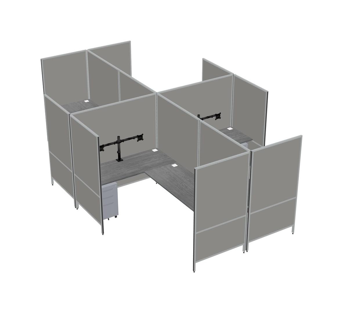 Système De Panneaux Modulaires Modernes Gris En Forme De L + Tiroirs Mobiles En Métal + Bras Pour écran (double Bras)