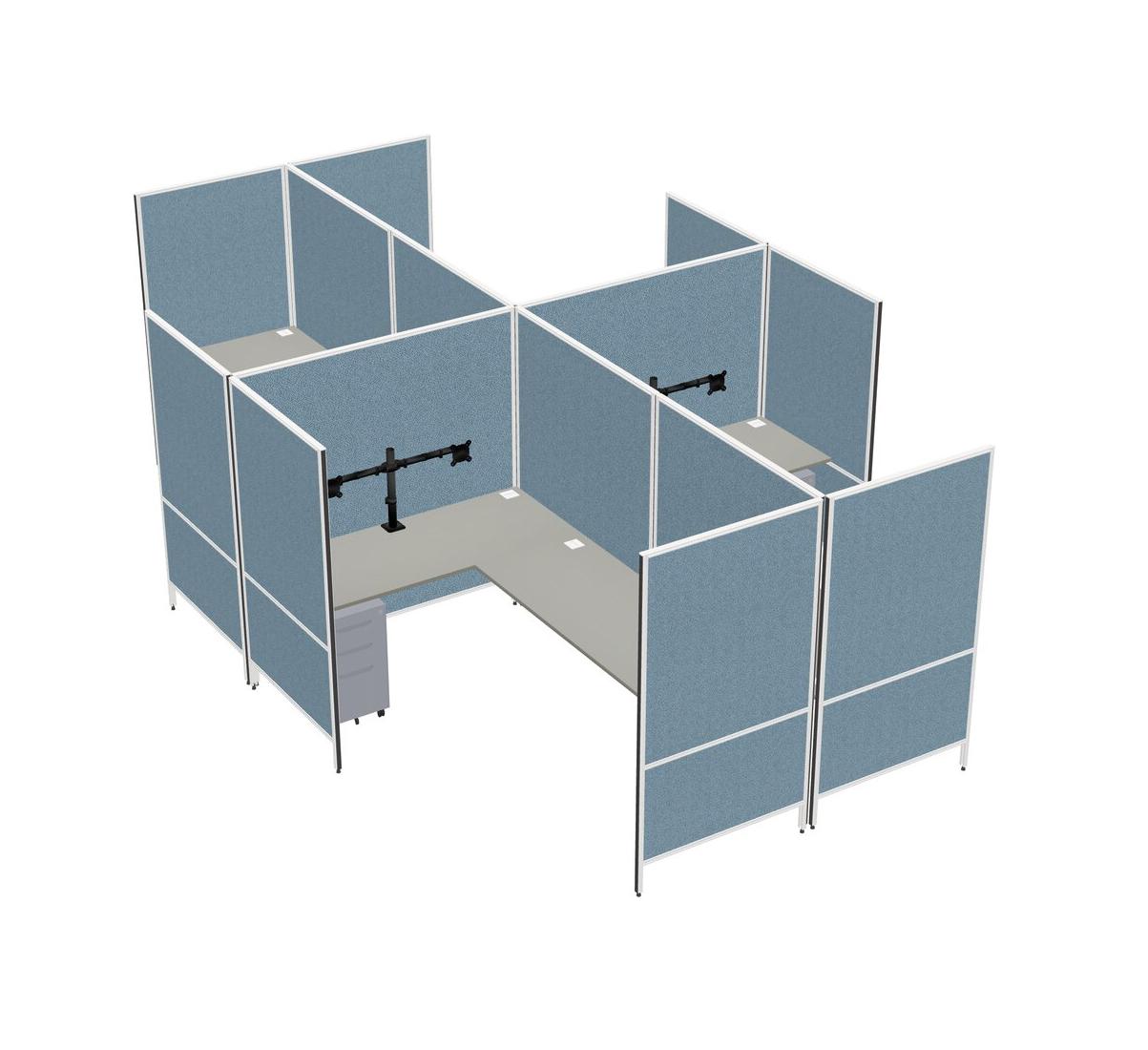 Système De Panneaux Modulaires Modernes En Forme De L Grey Shadows + Tiroirs Mobiles En Métal + Bras Pour écran (double Bras)